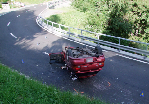 Der Lenker des Personenwagens fuhr zusammen mit einem Beifahrer auf der Kantonsstrasse durch Saas Richtung Davos. Bei der Örtlichkeit Waldhof verlor er die Herrschaft über sein Fahrzeug und kollidierte mit der Leitplanke. Das Auto überquerte die Fahrbahn und kollidierte auf der anderen Strassenseite mit der Stützmauer. Dadurch wurde es angehoben und kam auf dem Dach liegend mitten auf der Strasse zum Stillstand. Der Lenker erlitt offene Beinverletzungen und musste mit der Rega ins Kantonsspital Graubünden nach Chur geflogen werden. Der Beifahrer wurde leicht verletzt. Die Kantonsstrasse musste während rund zweieinhalb Stunden gesperrt werden. Der Verkehr wurde über die Nationalstrasse A28 umgeleitet.