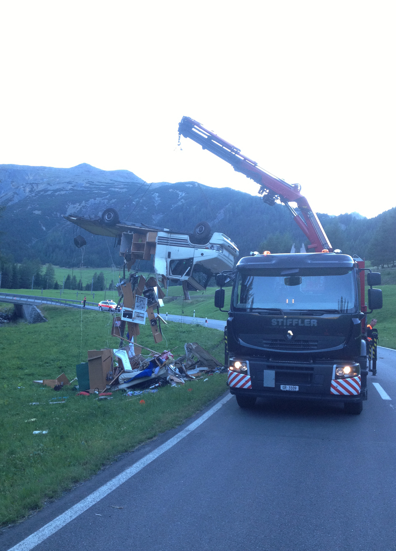 Das im Kanton Aargau immatrikulierte Wohnmobil war auf der Prättigauerstrasse von Davos Richtung Klosters unterwegs. In einer Rechtskurve unterhalb des Wolfgangpasses geriet es rechts von der Strasse ab und überschlug sich. In der angrenzenden Wiese kam es auf dem Dach liegend und total zerstört zum Stillstand. Der Lenker wurde mittelschwer verletzt und mit der Ambulanz ins Spital Davos gebracht. Die beiden Mitfahrerinnen erlitten einen Schock. Das Wohnmobil musste mit einem Lastwagen mit Kran geborgen werden. In dieser Zeit konnte die Unfallstelle nur einspurig befahren werden. Die Kantonspolizei Graubünden klärt die Unfallursache ab. Dazu wurden die Überreste des Wohnmobils sichergestellt.