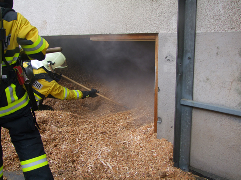 Ein Mottbrand im Lager der Holzschnitzelheizung einer Schreinerei hat am Donnerstag in Bever zu einem Grosseinsatz der Feuerwehr und der Polizei geführt. Um das Feuer löschen zu können, musste das gesamte Silo entleert werden.