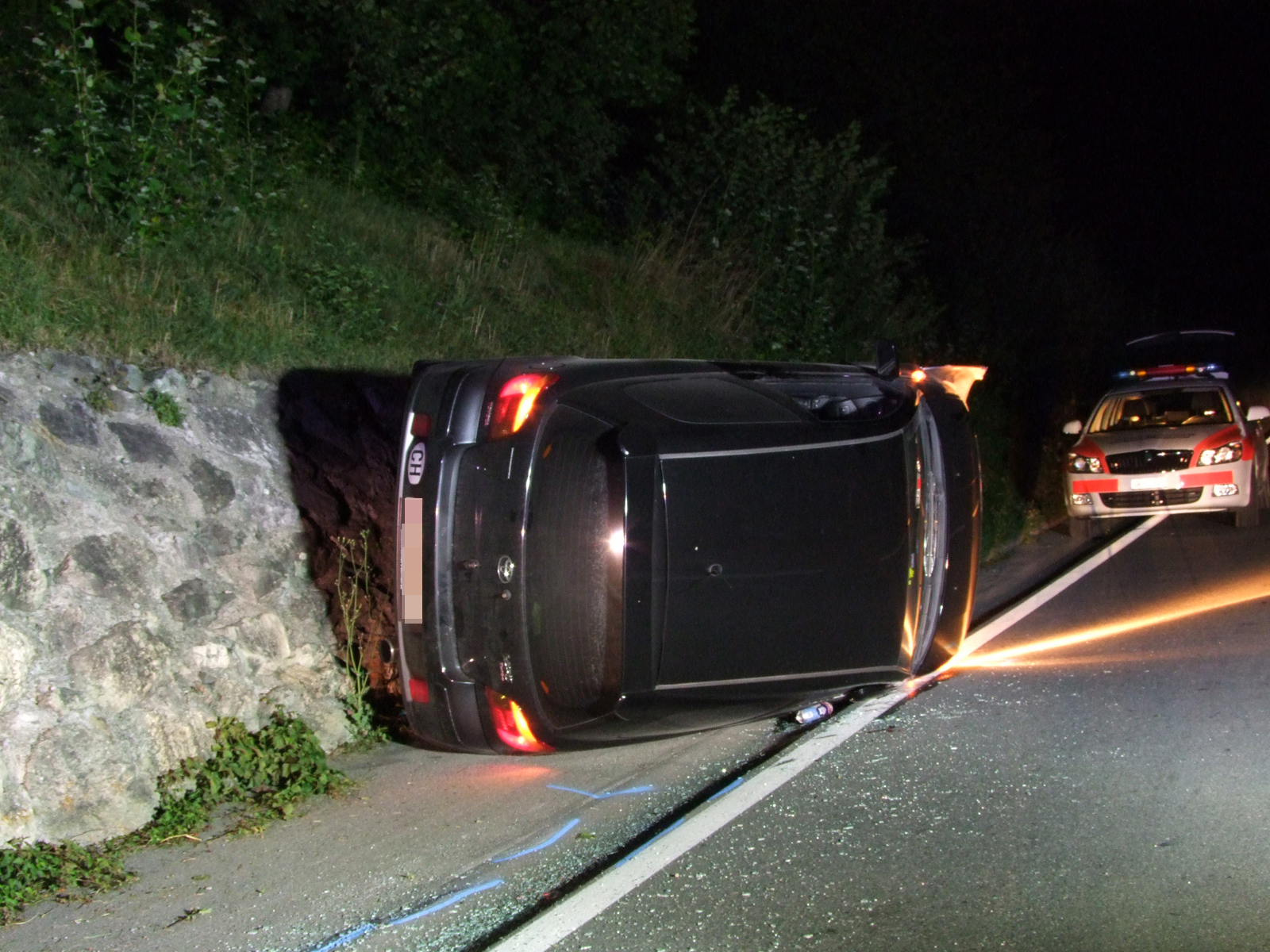Der 39-jährige Lenker fuhr mit seinem Personenwagen von Schluein Richtung Laax. Bei der Örtlichkeit Fletg, kurz vor der Abzweigung nach Sagogn, kam das Auto ins Schleudern. Es geriet auf die Gegenfahrbahn, fuhr einige Meter der Stützmauer entlang und kippte dann um. Auf der Seite liegend kam es zum Stillstand. Die Ambulanz brachte den leicht verletzten Mann ins Spital nach Ilanz. Das beschädigte Auto wurde abgeschleppt.