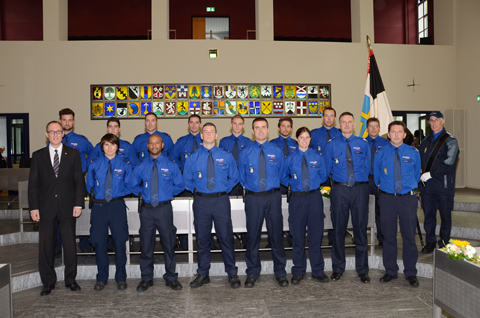 Die zwei Frauen und elf Männer absolvierten die einjährige Polizeischule in Amriswil (TG) und standen bereits im Rahmen eines Praktikums einige Wochen im Kanton im Einsatz. Ab 1. Oktober 2013 sind sie nun offiziell Teil der Kantonspolizei Graubünden – mit allen Rechten und Pflichten, die der Polizeidienst mit sich bringt. Das entsprechende Gelübde legten sie während der Brevetierungsfeier über der Bündner Fahne ab. Der Kommandant der Kantonspolizei Graubünden, Oberst Walter Schlegel, richtete klare Erwartungen an seine neuen Mitarbeitenden: „Von Ihnen wird erwartet, dass Sie auch in schwierigen Lagen Haltung zeigen, dass Sie aufrichtig und überzeugend reagieren, dass Sie authentisch sind. Ihr Handeln und Ihr Auftreten prägen das Bild unserer Polizei massgeblich mit.“