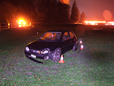 Die 19-jährige Frau fuhr um 22 Uhr auf der alten Kantonsstrasse von Landquart Richtung Grüsch. Bei der Ganda geriet ihr Fahrzeug auf der nassen Fahrbahn ins Schleudern. Das Auto fuhr über die Gegenfahrbahn und durchschlug den Zaun. Im Wiesland kam es zum Stillstand. Die Ambulanz brachte die Lenkerin und ihren 21-jährigen Mitfahrer ins Spital nach Schiers. Bei der Frau wurde eine Blutprobe angeordnet. Das total beschädigte Fahrzeug wurde noch in der Nacht mit einem Kran geborgen.