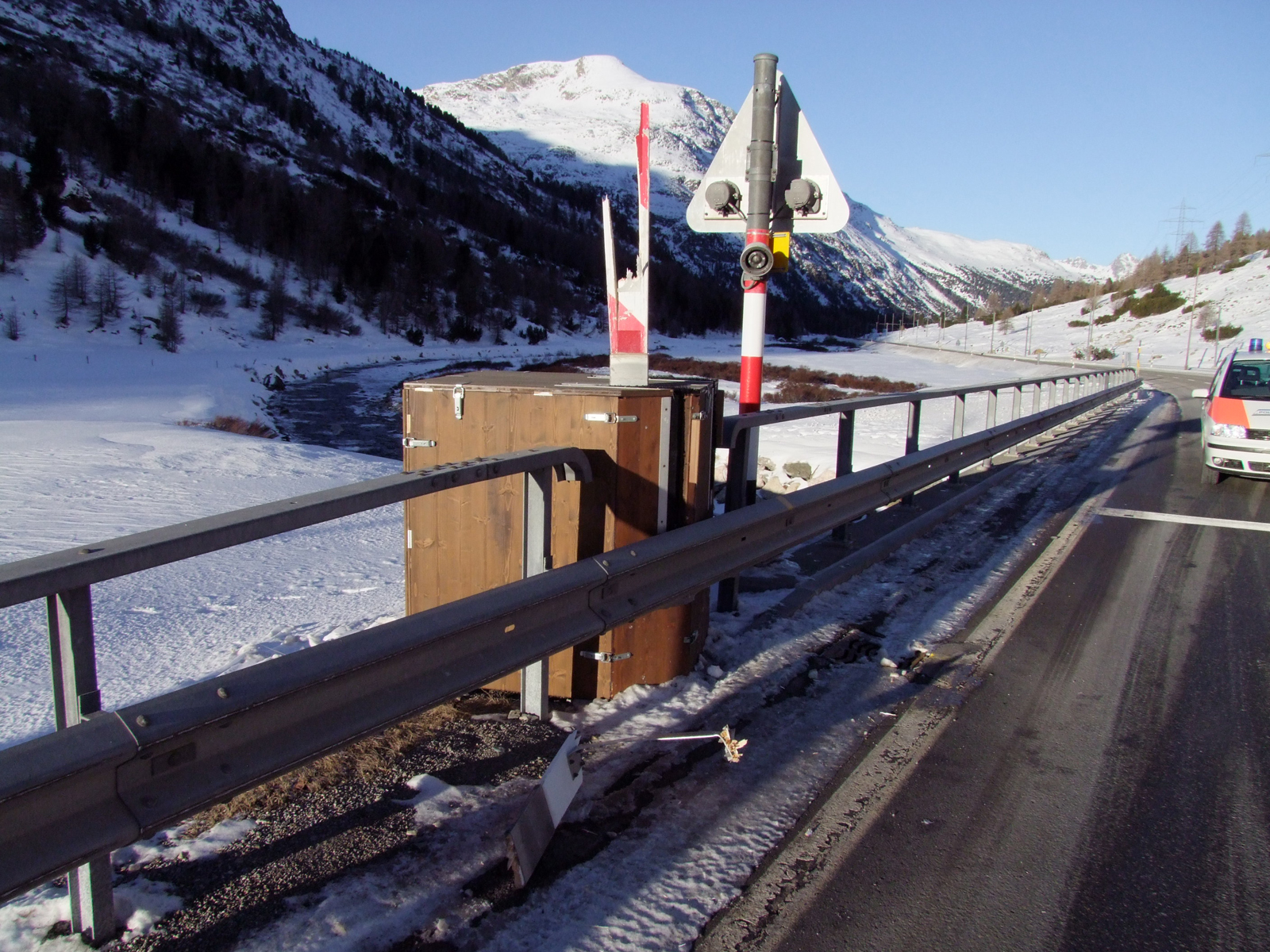 Am Donnerstagmorgen hat sich auf der Berninastrasse beim Bahnübergang Bernina Suot ein Verkehrsunfall mit einem Personenwagen ereignet. Das Auto fuhr durch die geschlossene Schranke der Rhätischen Bahn. Zum Glück entstand nur Sachschaden.