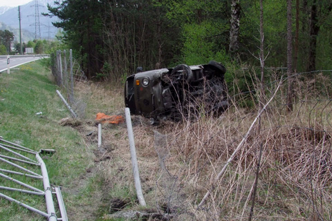 Ein mit zwei Personen besetzter Personenwagen fuhr auf der A13 in Richtung Süden. Kurz vor der Ausfahrt Rothenbrunnen verlor der 26-jährige Lenker aus noch ungeklärten Gründen die Kontrolle über seinen Wagen. Dabei geriet das Fahrzeug über den rechten Fahrbahnrand hinaus, prallte gegen eine Vorankündigungstafel und durchbrach danach den Wildschutzzaun. Nach rund dreissig Metern Schleuderfahrt kam der Wagen auf der Seite liegend am Waldrand total beschädigt zum Stillstand. Mit mittelschweren Verletzungen wurden die Verunfallten mit zwei Ambulanzfahrzeugen ins Spital nach Thusis überführt. Der Verkehr in Richtung Süden wurde während rund zwei Stunden über die Kantonsstrasse umgeleitet.