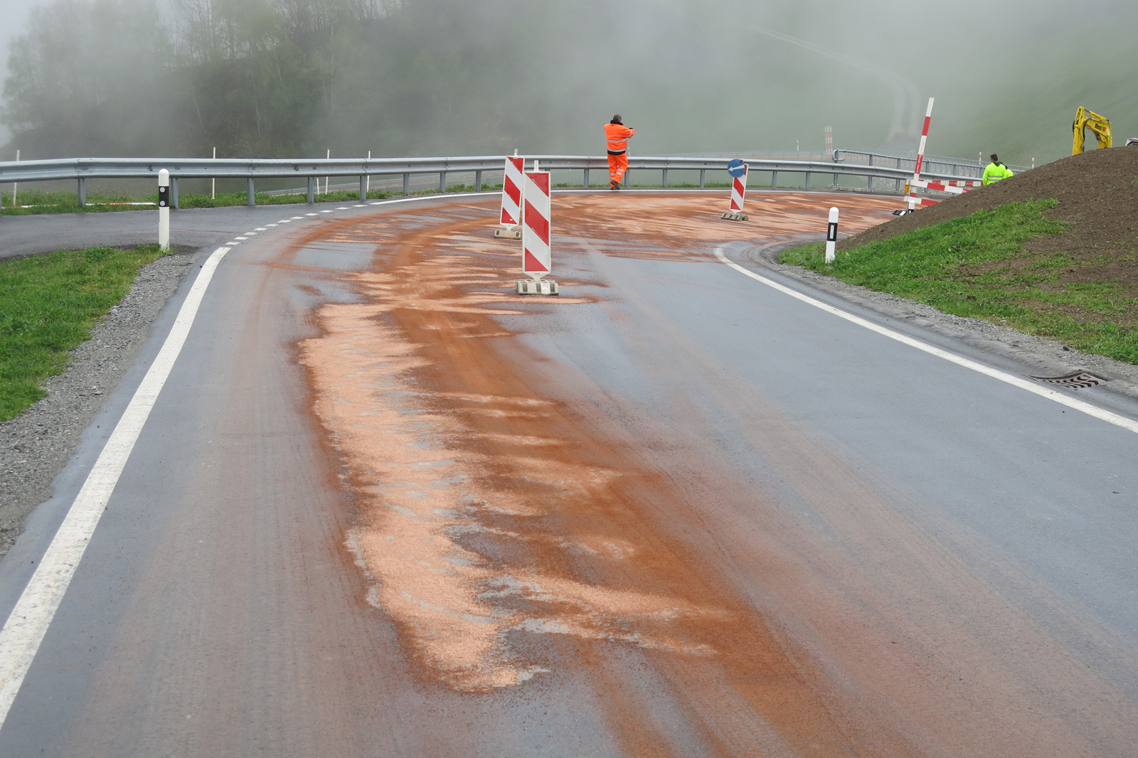 Ein Lastwagen transportierte kurz vor 9 Uhr ein Stromaggregat auf eine Baustelle unterhalb von Brigels. Am Tank des Stromaggregats war der Verschlussdeckel nicht aufgesetzt. Auf der Bergfahrt schwappte das auslaufende Dieselöl über die Auffangwanne auf die Fahrbahn. Ein Teil des Dieselöls gelangte in den Bach. Einsatzkräfte der Stützpunktfeuerwehr Sursassiala streuten ein Bindemittel, um das Dieselöl zu binden. Im Einsatz standen auch die Feuerwehr Brigels, ein Spezialist des Amtes für Natur und Umwelt und die Kantonspolizei Graubünden.