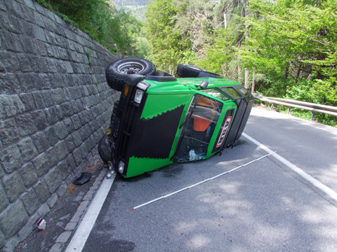 Der 27-jährige Automobilist fuhr von Tamins herkommend in Richtung Bonaduz. Am Bonaduzerstutz, in einer leichten Rechtskurve, geriet der Wagen ins Schleudern und kollidierte mit der rechtsseitigen Stützmauer. In der Folge überquerte das Auto die Gegenfahrbahn, prallte an die linke Leitplanke und von da wieder zurück gegen die rechte Mauer. Schliesslich kam das Fahrzeug auf der linken Seite liegend zum Stillstand. Mit der Ambulanz wurde der leicht verletzte Lenker zur Kontrolle zum Hausarzt gebracht. Am Unfallwagen entstand erheblicher Sachschaden. Während rund eineinhalb Stunden musste der Verkehr einspurig an der Unfallstelle vorbeigeführt werden.