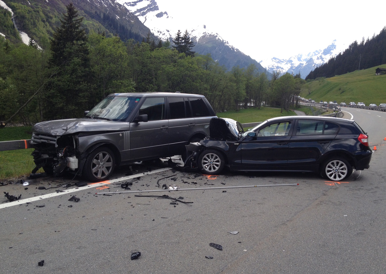 Ein deutscher Fahrzeuglenker fuhr über die A13 Richtung Norden. Auf der Höhe von Medels geriet er kurz vor 15.30 Uhr auf die Gegenfahrbahn und kollidierte mit einem entgegenkommenden Auto. Seine schwangere Beifahrerin verletzte sich leicht. Die Rega überführte sie in die Frauenklinik nach Luzern. Der Lenker und die Beifahrerin des Richtung Süden fahrenden Autos wurden mittelschwer verletzt. Zwei Rega Helikopter flogen die beiden Verletzten ins Kantonsspital Graubünden nach Chur. Während der Rettungs- und Bergungsarbeiten musste die A13 zwischen Splügen und Nufenen in beide Richtungen für über zwei Stunden gesperrt werden. Die Kantonspolizei Graubünden leitete den Verkehr über die Kantonsstrasse um.