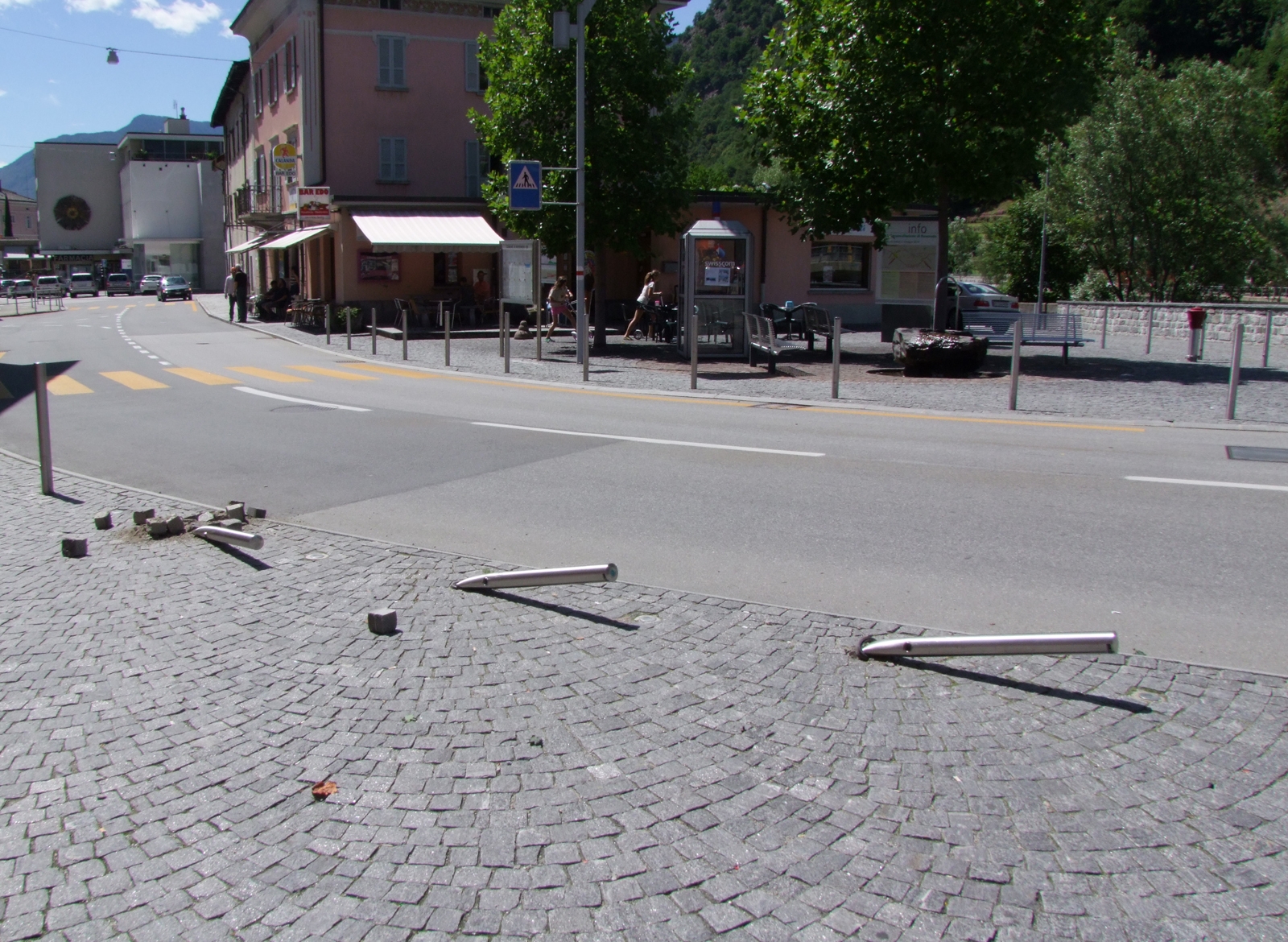 Am Montagnachmittag hat eine unbekannte Fahrzeuglenkerin im Wohngebiet in Roveredo drei Leitpfosten gerammt. Die Kantonspolizei Graubünden sucht Zeugen.