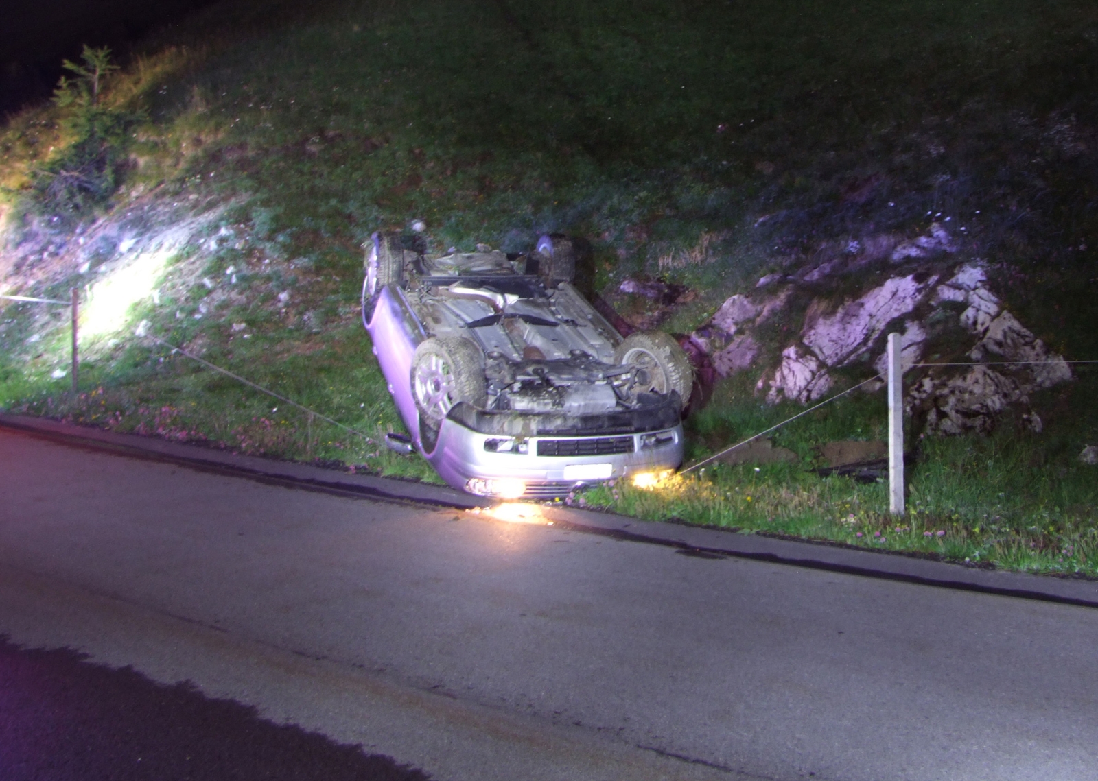 Der 50-jährige Automobilist war vom Albula Hospiz kommend in Richtung La Punt-Chamues-ch unterwegs. Unterhalb der Alp Alesch, in einer engen Rechtskurve (Spitzkehre), geriet er mit seinem Wagen über den linken Strassenrand hinaus. In der Folge stürzte das Fahrzeug sich mehrmals überschlagend rund 30 Meter den steilen Abhang hinunter und kam auf der unten weiterverlaufenden Strasse auf dem Dache liegend zum Stillstand. Leicht verletzt konnte sich der Fahrer aus dem total beschädigten Personenwagen befreien und begab sich nach La Punt Chamues-ch, wo er nach rund einer Stunde von der Kantonspolizei Graubünden angehalten werden konnte. Beim verunfallten Personenwagenlenker wurde eine Blutprobe angeordnet.
