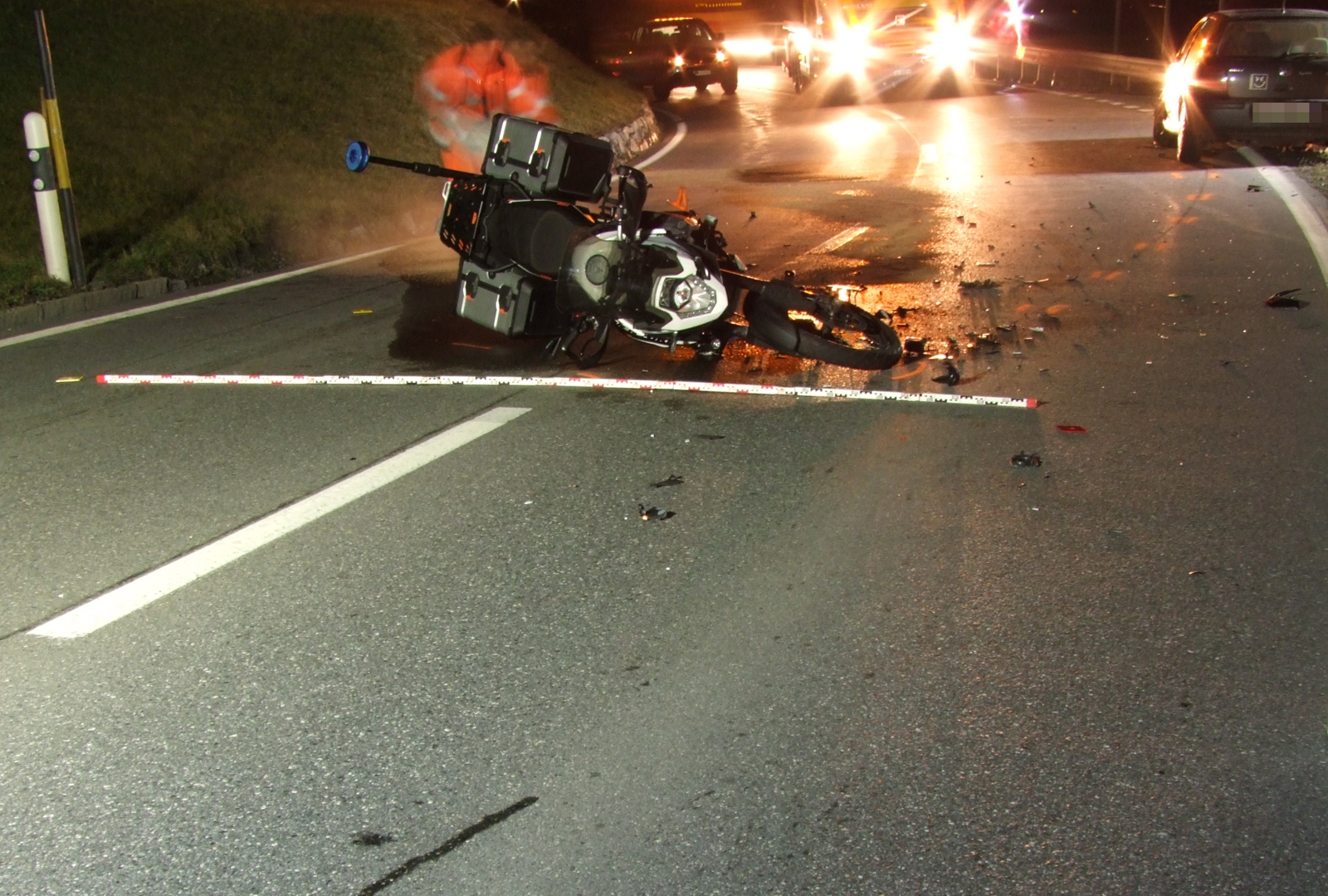 Der 50-jährige Motorradlenker fuhr um 20.30 Uhr auf der Oberalpstrasse von Tamins Richtung Trin. In der Rechtskurve bei der Örtlichkeit Platta kam es zu einer Streifkollision mit einem entgegenkommenden Personenwagen. Der Motorradlenker zog sich mittelschwere Verletzungen zu. Die Rettung Chur brachte ihn ins Kantonsspital Graubünden nach Chur. Für die Rettungs-und Bergungsarbeiten, Tatbestandsaufnahme und Fahrbahnreinigung musste die Oberalpstrasse für zwei Stunden gesperrt werden.