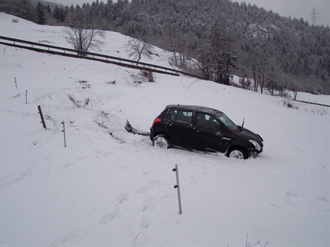 Die Automobilistin fuhr auf der Oberalpstrasse von Tamins kommend in Richtung Trin. Ausgangs einer Linkskurve geriet sie mit ihrem Fahrzeug ins Schleudern und kam auf die Gegenfahrbahn. Beim Beginn der linksseitigen Leitplanke hob es das Fahrzeug ab und stürzte nach links, sich ein- bis zweimal überschlagend, rund dreissig Meter über die abfallende Wiese hinunter. Die leichtverletzte Frau wurde zur Kontrolle ins Kantonsspital Graubünden nach Chur gebracht.