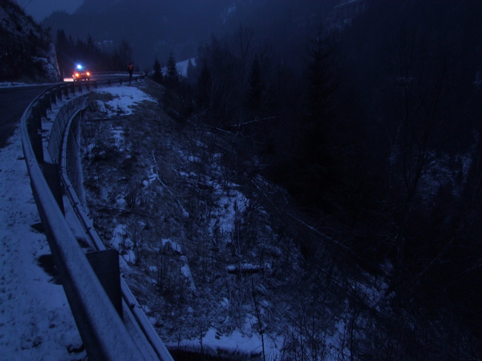 Die 28-jährige Automobilistin fuhr von Pfunds (A) kommend in Richtung Scuol. Nach Vinadi kam das Fahrzeug in einer Rechtskurve auf der rutschigen Fahrbahn ins Schleudern. Es überquerte die Gegenfahrbahn, kollidierte mit der Leitplanke und stürzte über diese hinweg die steil abfallende Böschung hinunter. Es überschlug sich mehrmals und kam nach rund 30 Metern total beschädigt im Gebüsch zum Stillstand. Die orientierungslose Lenkerin alarmierte ihren Arbeitgeber. Rund 30 Minuten nach dem Unfall konnte die Unfallstelle durch Mitarbeiter des Tiefbauamts und der Kantonspolizei Graubünden ausfindig gemacht und die leicht verletzte Frau geborgen werden. Sie wurde mit der Ambulanz ins Spital nach Scuol überführt.