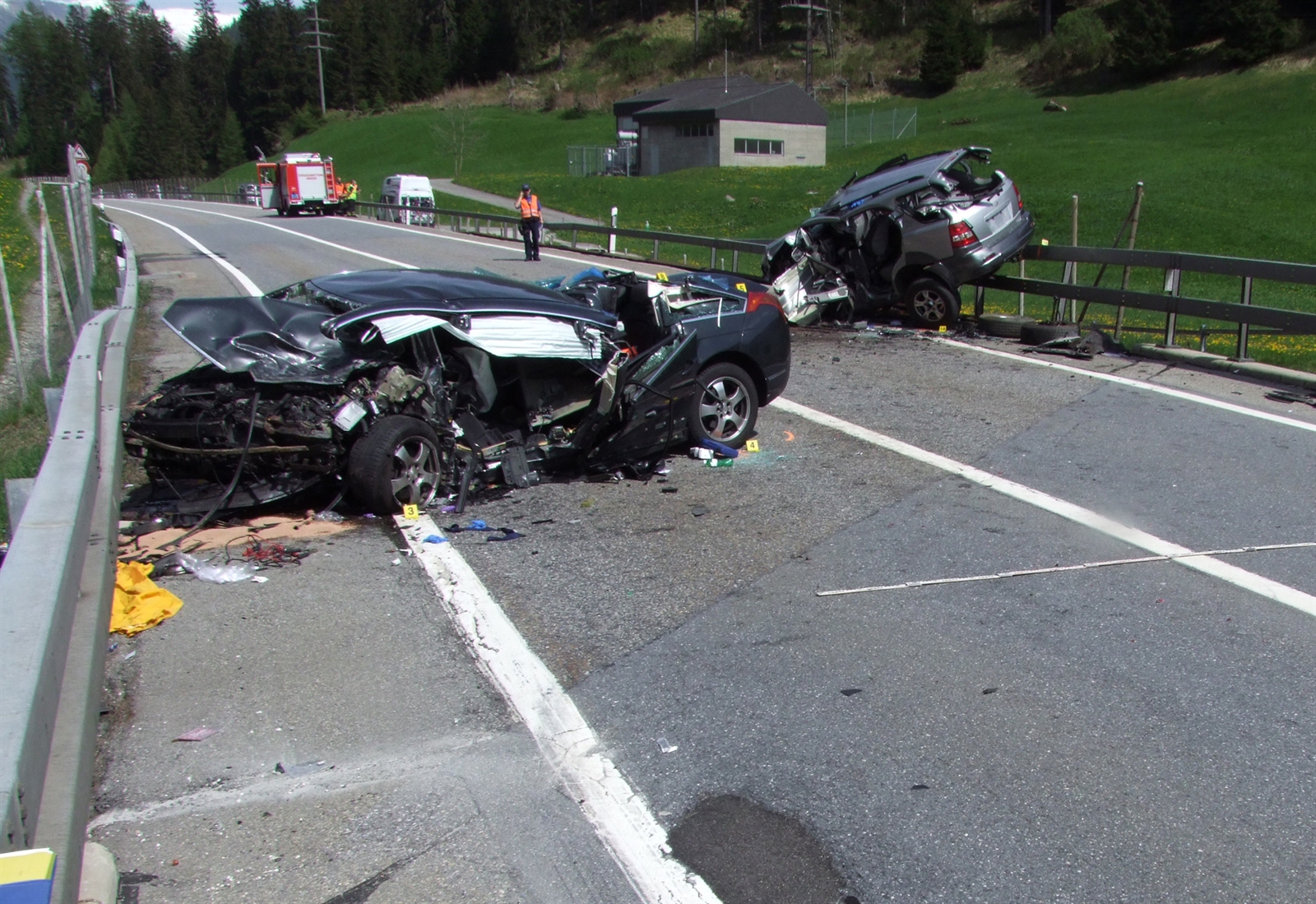 Bei einer Frontalkollision auf der Nationalstrasse A13 zwischen Sufers und Splügen sind am Sonntagmittag drei Personen schwer verletzt worden. Die Strasse war rund vier Stunden komplett gesperrt.
