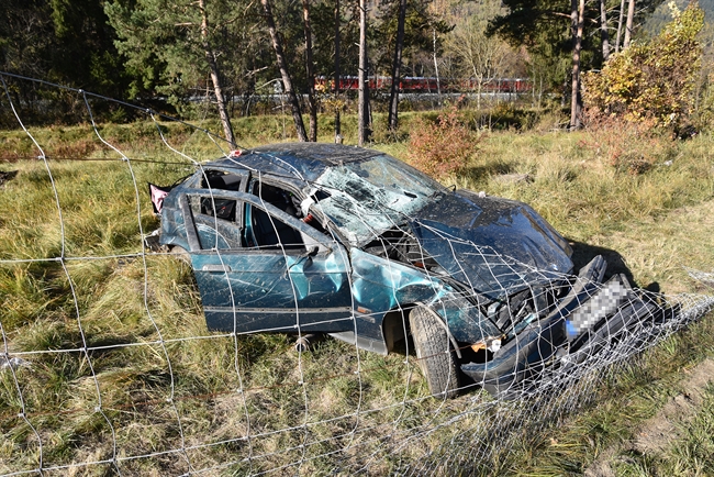 Das Fahrzeug, das Richtung Süden unterwegs war, geriet rechts neben die Strasse und fuhr die abfallende Böschung hinunter. Dabei kollidierte es zuerst mit dem Betonsockel einer Kunststoffschneestange und danach mit dem Wildschutzzaun. Das Auto überschlug sich mehrmals, wurde über den Wildschutzzaun katapultiert und kam hinter dem Zaun total beschädigt auf den Rädern zum Stillstand. Die beiden Insassen wurden leicht verletzt und mit der Ambulanz ins Spital nach Thusis gebracht. Der Wildschutzzaun wurde auf einer Länge von rund dreissig Metern beschädigt. Er musste durch das Tiefbauamt Graubünden wieder in Stand gesetzt werden.