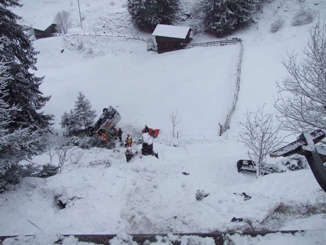 Der 36-jährige Lenker eines Lieferwagens fuhr von Peist kommend über die Schanfiggerstrasse in Richtung Langwies. Nach einer übersichtlichen Rechtskurve bei der Örtlichkeit Palätsch, kurz vor Langwies, geriet der Lenker mit seinem Kleinbus auf der schneebedeckten Strasse an den rechten Fahrbahnrand. In der Folge durchschlug das Auto den Bündnerzaun und stürzte 34 Meter über den steilen Abhang hinunter. Auf dem Dach liegend kam das Fahrzeug zum Stillstand, sodass der Lenker in der Kabine eingeklemmt wurde. Die Strassenrettung der Feuerwehr Arosa rückte mit 8 Einsatzkräften zum Unfallort aus und befreite den Mann aus seiner misslichen Lage. Der Mann wurde unbestimmten Verletzungen mit der Ambulanz der Alpinmedic Arosa ins Kantonsspital Graubünden nach Chur überführt.