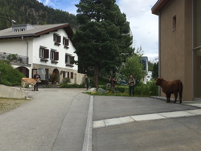 Am Samstagnachmittag sind in Pontresina zwei schottische Hochlandrinder beim Abladen aus dem Lastwagen ausgebüxt. Ein Tier irrte im Dorf herum und hielt Landwirte, Alppersonal und Polizisten in Atem.