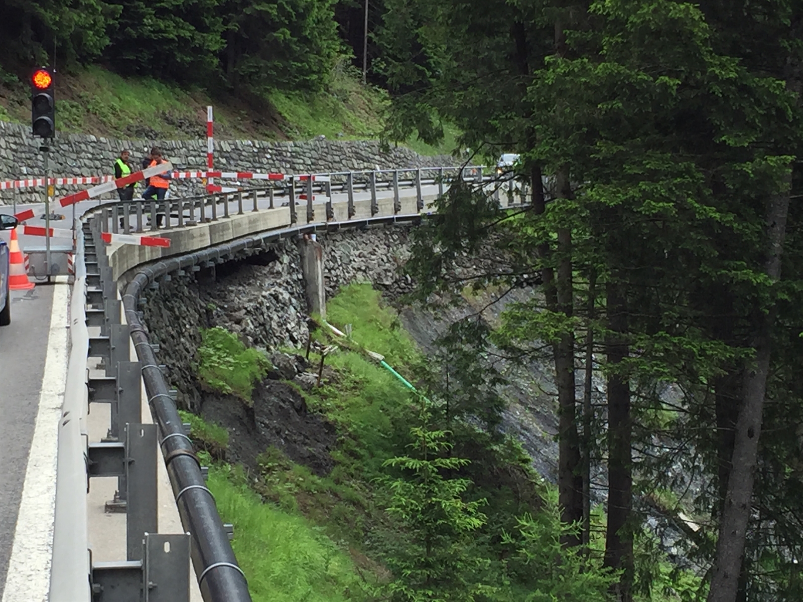 Das Tiefbauamt Graubünden hat Sofortmassnahmen zur Sicherung der Julierstrasse eingeleitet. Die entsprechenden Bauarbeiten werden voraussichtlich am Samstag, 2. Juli 2016 soweit vorangeschritten sein, dass auch der Schwerverkehr diesen Bereich wieder einspurig passieren kann. Die darauf folgenden Instandsetzungsarbeiten der talseitigen Fahrspur werden rund 2 Monate in Anspruch nehmen.