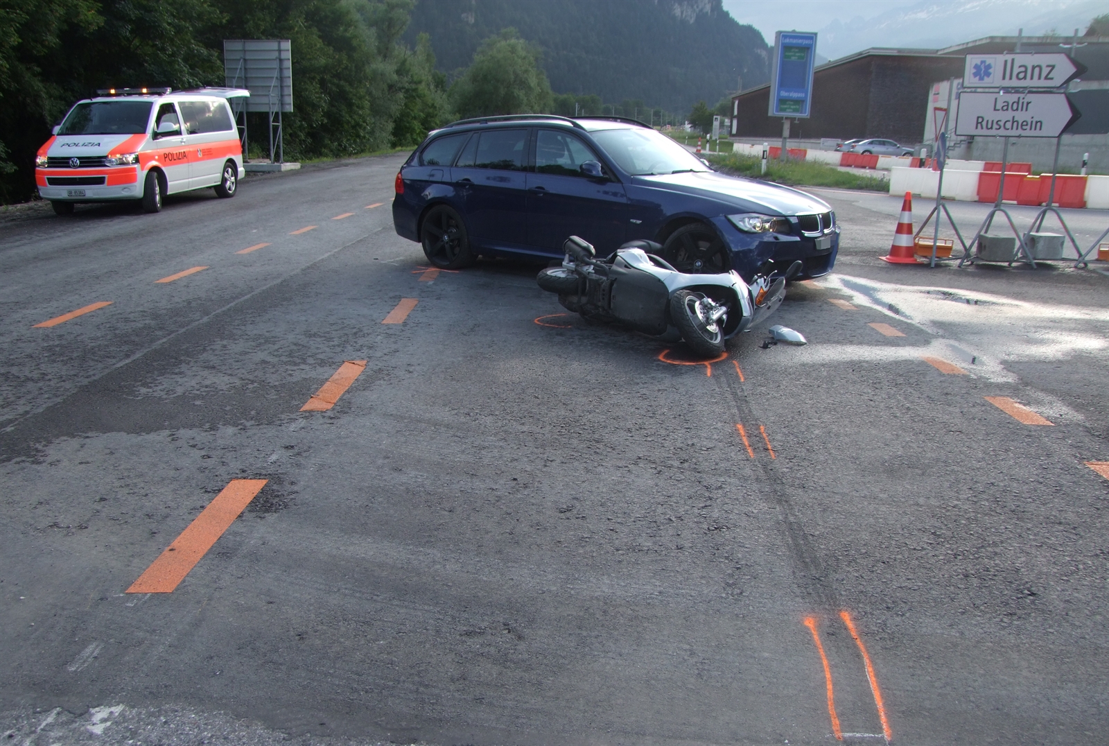 Der 32-jährige Rollerfahrer fuhr kurz vor 19 Uhr von Ilanz in Richtung Rueun. Beim Anschluss Ilanz West prallte er in einen entgegenkommenden Personenwagen, der nach Ilanz abbog. Dessen 20-jährige Lenkerin hatte den Roller übersehen. Die Ambulanz versorgte den verletzten Mann notfallmedizinisch und überführte ihn ins Spital in Ilanz.
