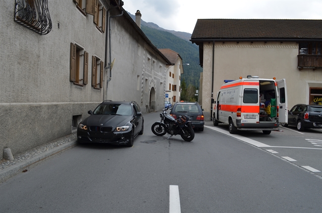 Der Zweiradfahrer fuhr in Richtung Brail hinter einem Auto. In einem Engpass, beim Dorfausgang, bremste der vorausfahrende Autolenker sein Fahrzeug ab, um einen entgegenkommen Personenwagen den Vortritt zu gewähren. Der Töfffahrer bemerkte dies zu spät und versuchte das vorausfahrende Auto nach links auszuweichen. In der Folge prallte er auf der Gegenfahrbahn frontal mit dem entgegenkommenden Wagen. Beim Sturz zog sich der Motorradlenker mittelschwere Verletzungen zu und musste mit der Ambulanz Zernez ins Spital nach Samedan transportiert werden. An den am Unfall beteiligten Fahrzeugen entstand erheblicher Sachschaden.