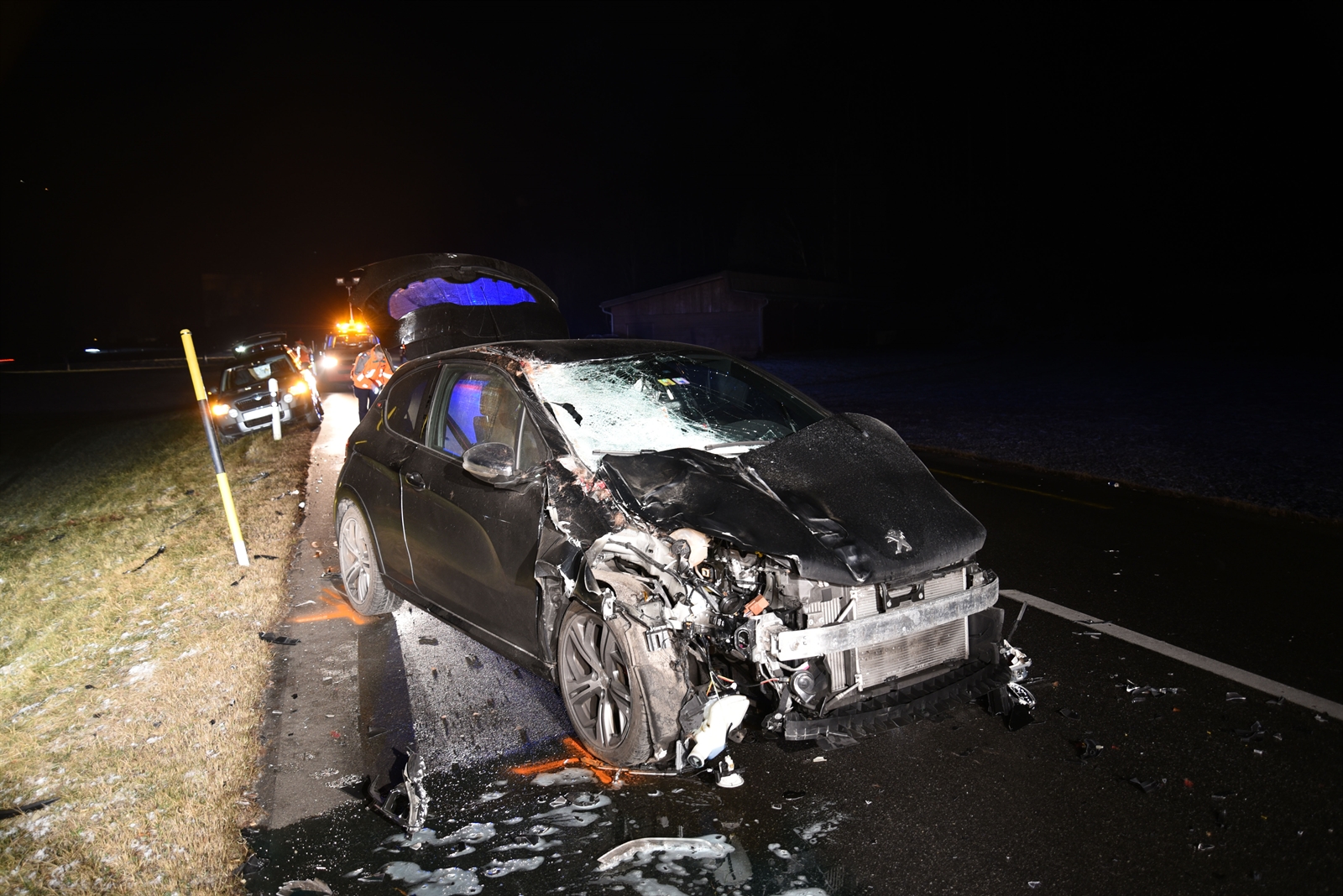 Ein Personenwagenlenker fuhr am Montagabend um 17.30 Uhr auf der Verbindungsstrasse in Richtung Untervaz. Bei der Örtlichkeit Salis war eine Gruppe von vier Pferden aus ihrer umzäunten Weide ausgebrochen und befand sich in der Dunkelheit auf der Fahrbahn. Der Fahrzeuglenker erkannte die Tiere zu spät und es kam zu einer Kollision mit drei Pferden. Dabei wurden diese unterschiedlich schwer verletzt. Zwei mussten durch den Tierarzt vor Ort eingeschläfert werden. Eines wurde verletzt ins Tierspital nach Zürich transportiert. Der Fahrzeuglenker blieb beim Aufprall unverletzt. Am Personenwagen entstand Totalschaden.