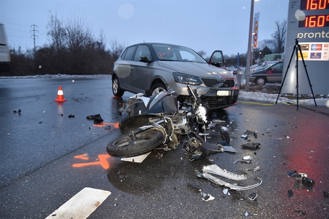 In Zizers sind am Freitagmorgen ein Motorrad und ein Personenwagen frontal kollidiert. Der Motorradlenker wurde dabei verletzt.