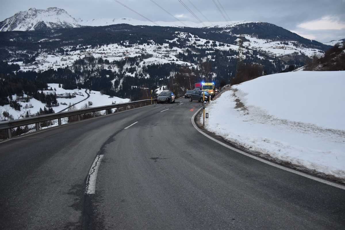 Am Freitagmorgen sind in Brienz/Brinzauls zwei Personenwagen frontal miteinander kollidiert. Drei Personen wurden verletzt. Die Julierstrasse musste für über eine Stunde ganz gesperrt werden.