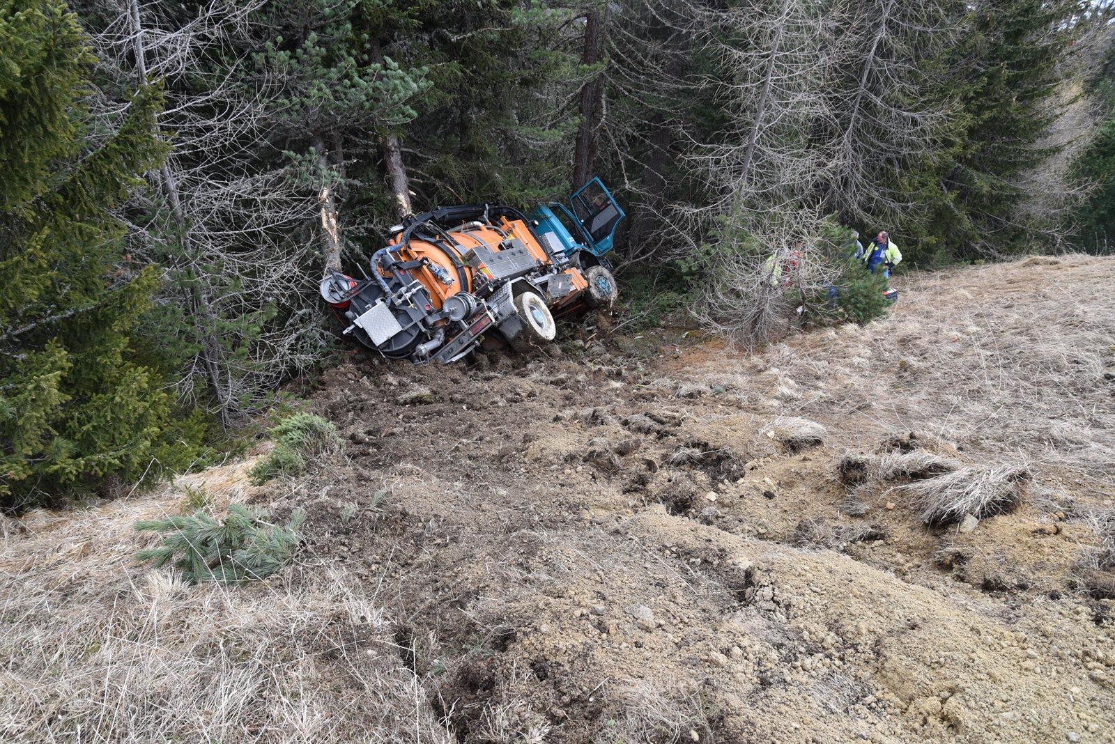 Ein 50-jähriger Lastwagenlenker war mit seinem Lastwagen mit Spezialaufbau im Tunnel Valle die Lei mit der Tunnel-Reinigung beschäftigt. Kurz vor dem Ostportal kollidierte der Lastwagen aus noch ungeklärten Gründen mit der rechtsseitigen Tunnelwand. Nach dem Portal kollidierte das Fahrzeug mit der linksseitigen Stützmauer sowie der dortigen Verkehrstafel. Nach zirka 50 Meter kam der Lastwagen rechts von der Fahrbahn ab, stürzte den steil abfallenden Hang hinunter und kam unterhalb der Strasse in einer Baumgruppe zum Stillstand. Der Lastwagenlenker erlitt unbestimmte Verletzungen und wurde mit der Rega ins Kantonspital Graubünden nach Chur überführt. Der Lastwagen wurde stark beschädigt.