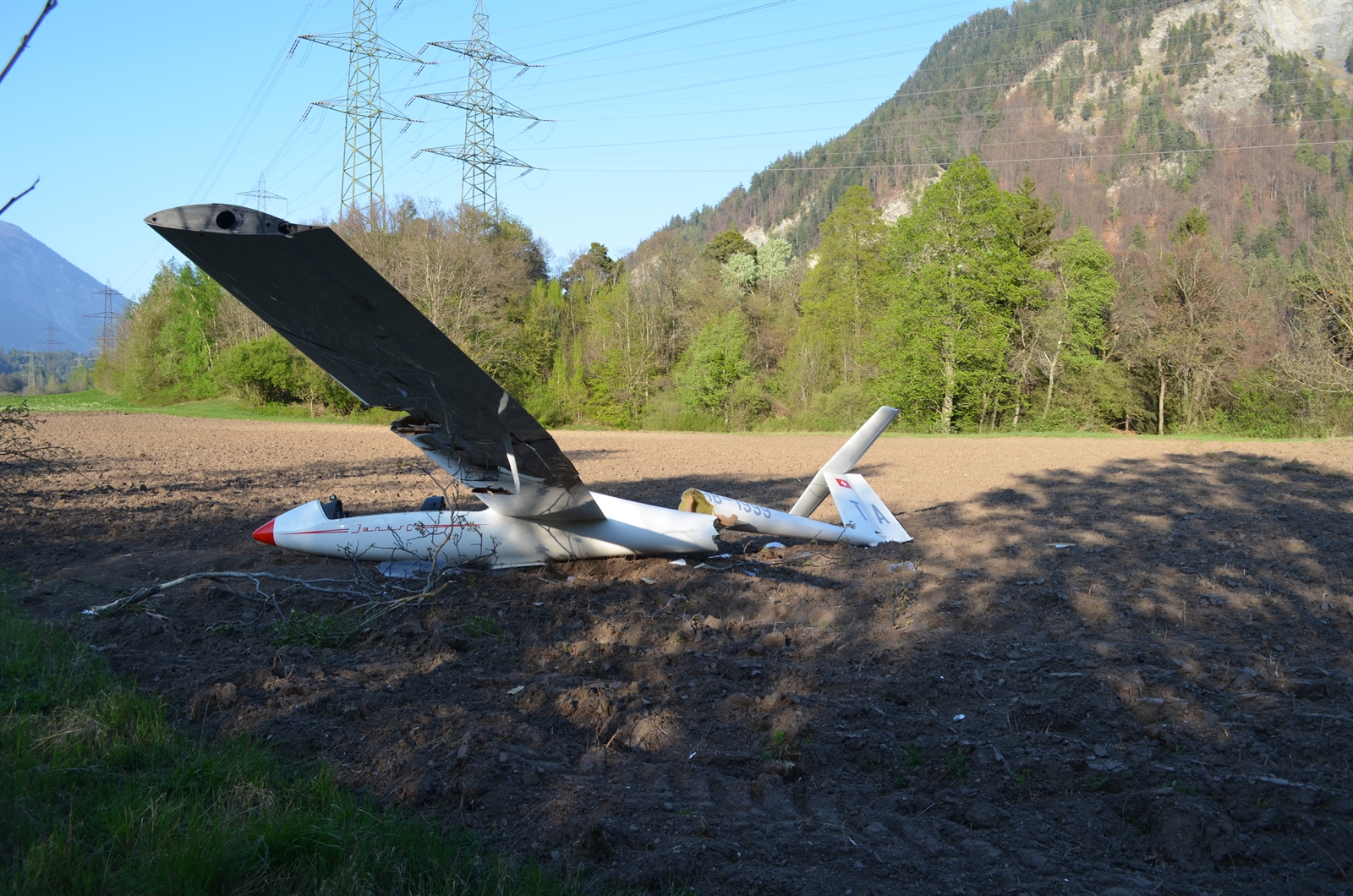 Der 72-jährige Pilot und sein Flugpassagier waren mit ihrem Segelflugzeug im Tessin gestartet und flogen von der Surselva herkommend über Bonaduz. Da das Flugzeug in diesem Bereich stark an Höhe verlor und keine Thermik mehr gefunden werden konnte, entschied sich der Pilot auf dem Feld zwischen Bonaduz und Rhäzüns eine Notlandung zu machen. Die eingeleitete Notlandung konnte dann allerdings aufgrund starker Windböen nicht vollzogen werden. Der Pilot musste sein Fluggerät über den voraussichtlichen Landeplatz hinausfliegen und kollidierte beim Wendemanöver östlich des Dorfes Rhäzüns mit einem Baum. Aus einer Höhe von zirka 5 Meter stürzte das Segelflugzeug auf einen Acker hinunter. Der Pilot wurde durch den Aufprall am Rücken verletzt. Er wurde vor Ort notfallmedizinisch betreut und durch die Rettung Chur ins Kantonsspital Graubünden nach Chur überführt. Sein 49-jähriger Passagier blieb unverletzt. Am Segelflugzeug entstand Totalschaden.