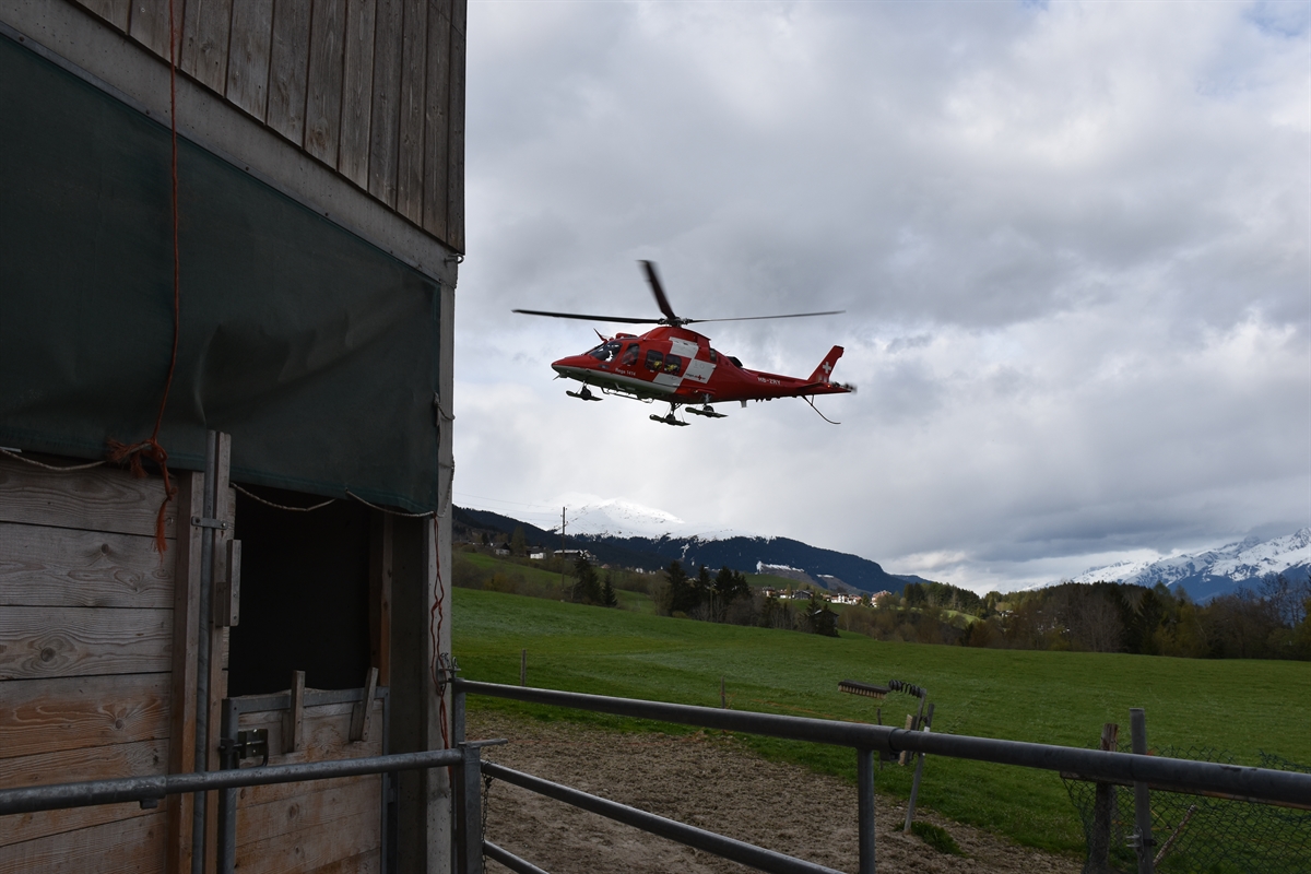 Am Donnerstagmorgen ist auf einem Bauernhof in Surcuolm eine Bäuerin von einem Heustock gestürzt. Sie verletzte sich dabei mittelschwer.