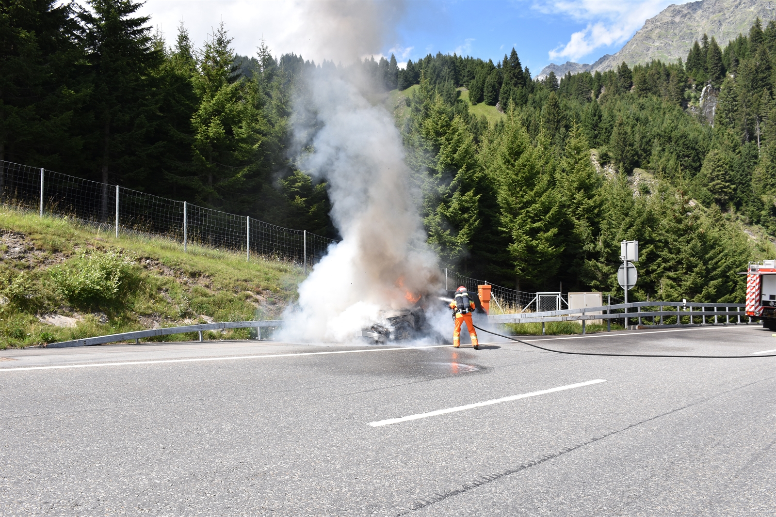 Am Freitagnachmittag um 15.15 Uhr hat auf der Autostrasse A13 in Pian San Giacomo ein Personenwagen Feuer gefangen. Verletzt wurde niemand.