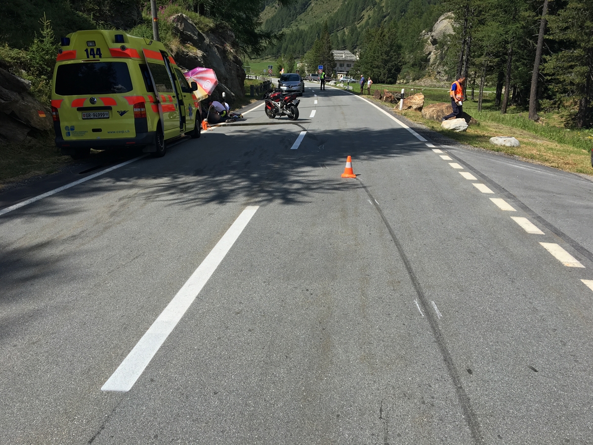 Am Mittwochnachmittag hat sich auf der Berninastrasse bei La Rösa eine Kollision zwischen einem Auto und einem Motorrad ereignet. Der Motorradlenker wurde verletzt.