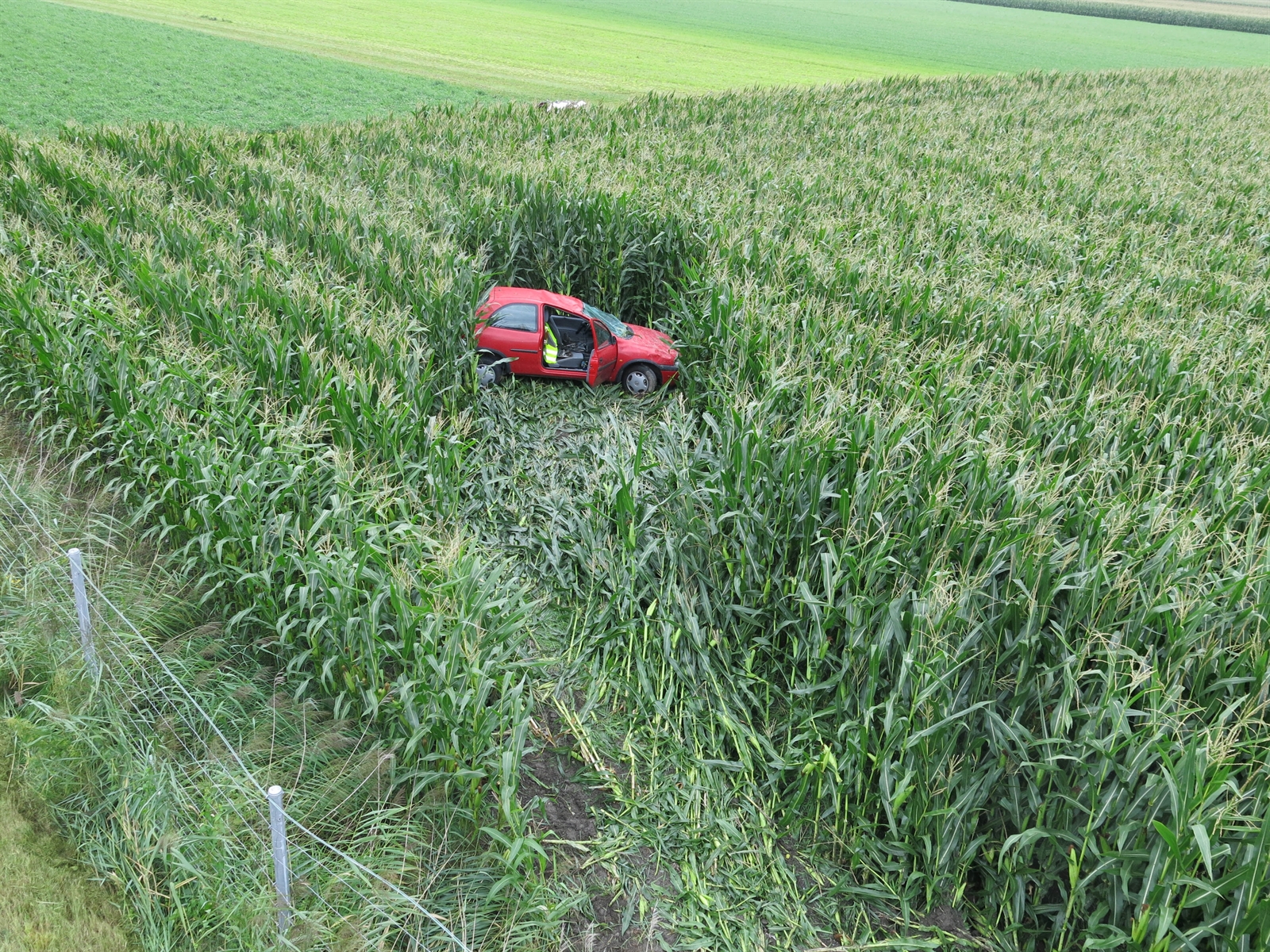 Auf der Autobahn A13 in Maienfeld hat sich am Freitagvormittag ein Selbstunfall ereignet. Dabei überschlug sich ein Auto ins Maisfeld.