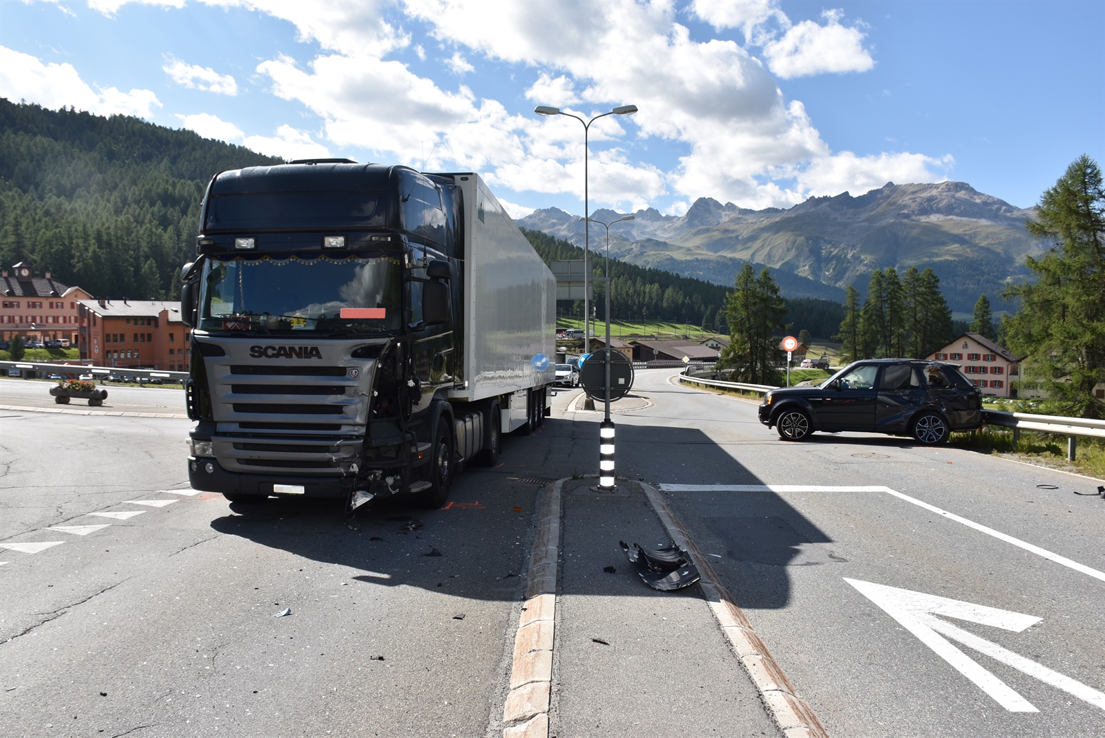 In Pontresina hat sich am Dienstag eine Kollision zwischen einem Personenwagen und einem Sattelmotorfahrzeug ereignet. Eine Mitfahrerin wurde verletzt.