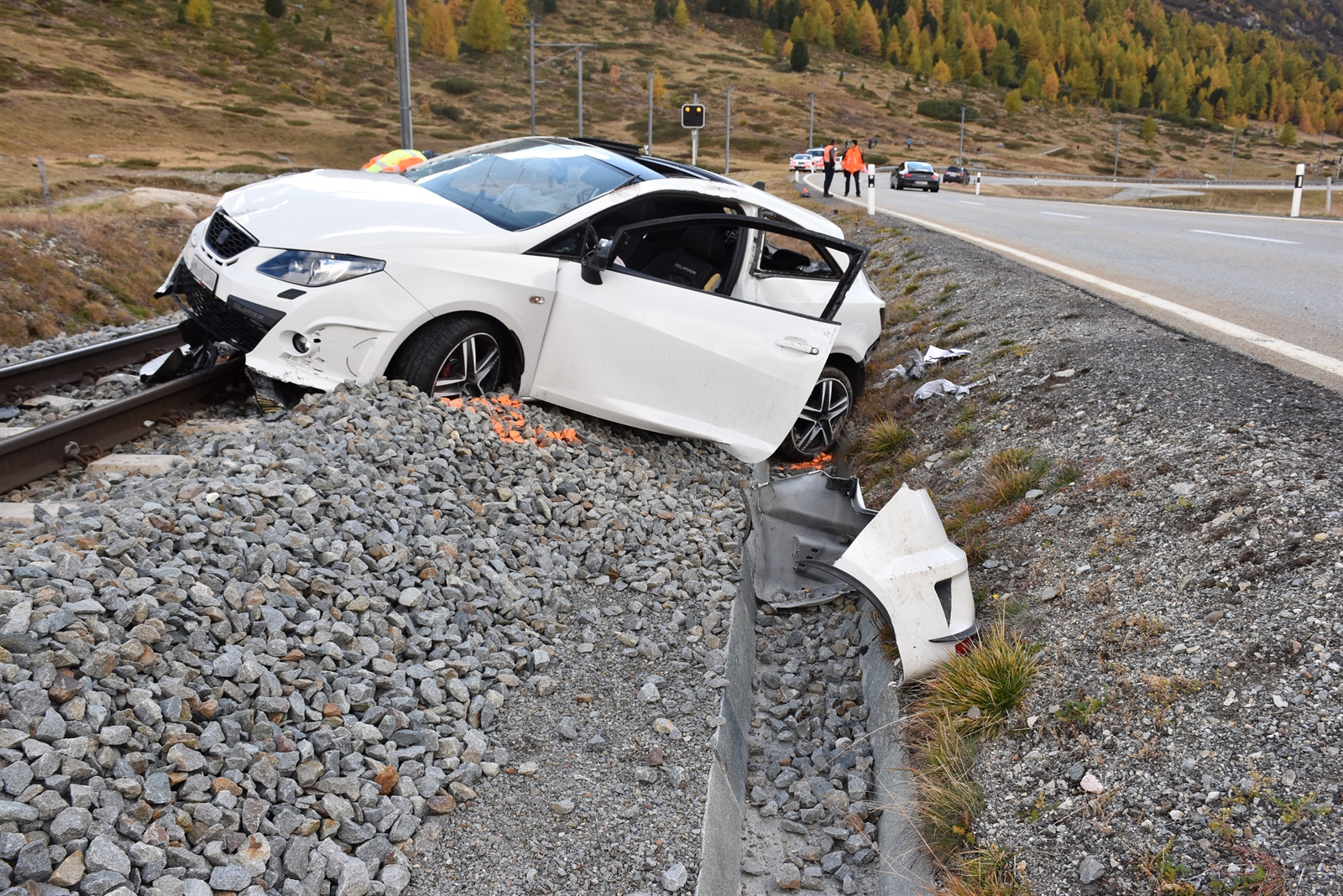 Ein 19-Jähriger fuhr um 16.30 Uhr auf der Berninastrasse H29 von Pontresina kommend in Richtung Bernina Hospiz. In einer Linkskure schleuderte sein Personenwagen und geriet rechts von der Strasse ab. Das Fahrzeug überschlug sich und kam total beschädigt auf dem Bahntrasse der RhB zum Stillstand. Der Fahrer sowie sein gleichaltriger Mitfahrer wurden leicht verletzt mit zwei Ambulanzen der Rettung Oberengadin ins Spital nach Samedan transportiert. Die Bahnlinie war während rund eineinhalb Stunden unterbrochen. Die RhB setzte während dieser Zeit einen Bahnersatz ein.
