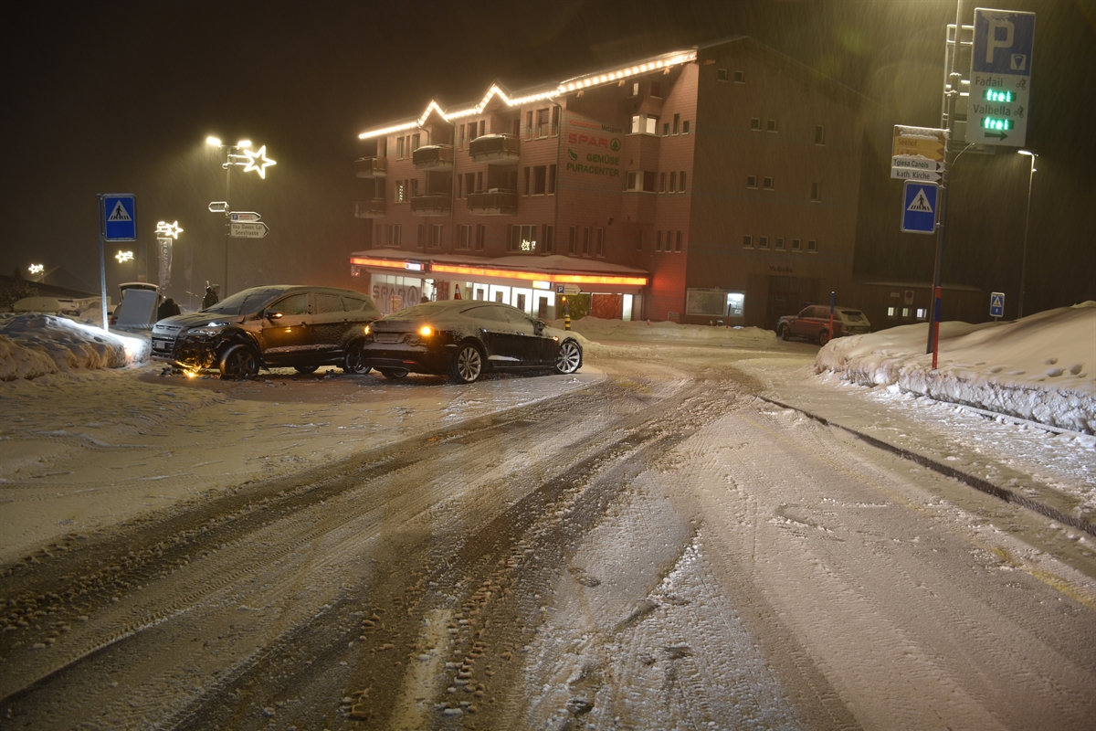 Am Mittwoch kurz vor 17.30 Uhr fuhr ein 49-jähriger Autolenker in Valbella auf der schneebedeckten Hauptstrasse H3 in Richtung Lenzerheide. Bei der Verzweigung in die Voa Davos Lai bogen die beiden ihm vorausfahrenden Fahrzeuge nach rechts ab. Der 49-Jährige nahm die Situation zu spät wahr und wich, um eine Auffahrkollision zu verhindern, nach links in Richtung eines Vorplatzes aus. Auf der Gegenfahrspur kam es zu einer heftigen seitlichen Kollision mit einem Auto eines 66-jährigen. Der 66-Jährige begab sich zur ambulanten Behandlung zum Dorfarzt. Der an den beiden Fahrzeugen entstandene Sachschaden beträgt rund dreissigtausend Franken.