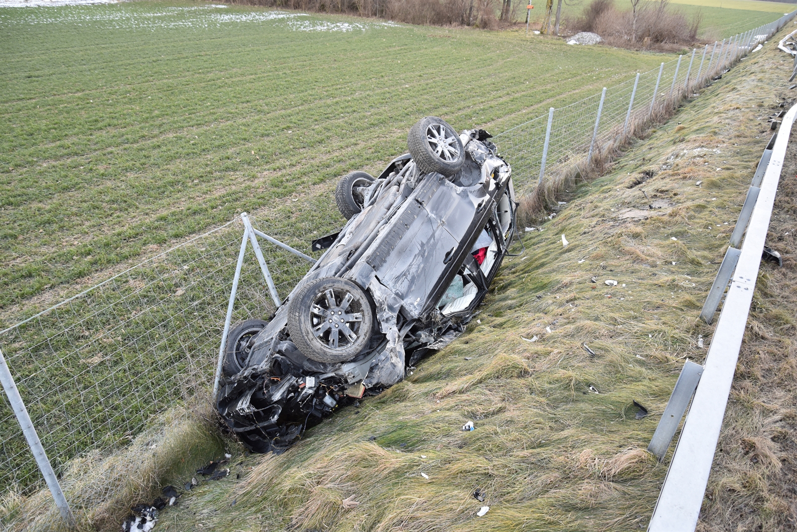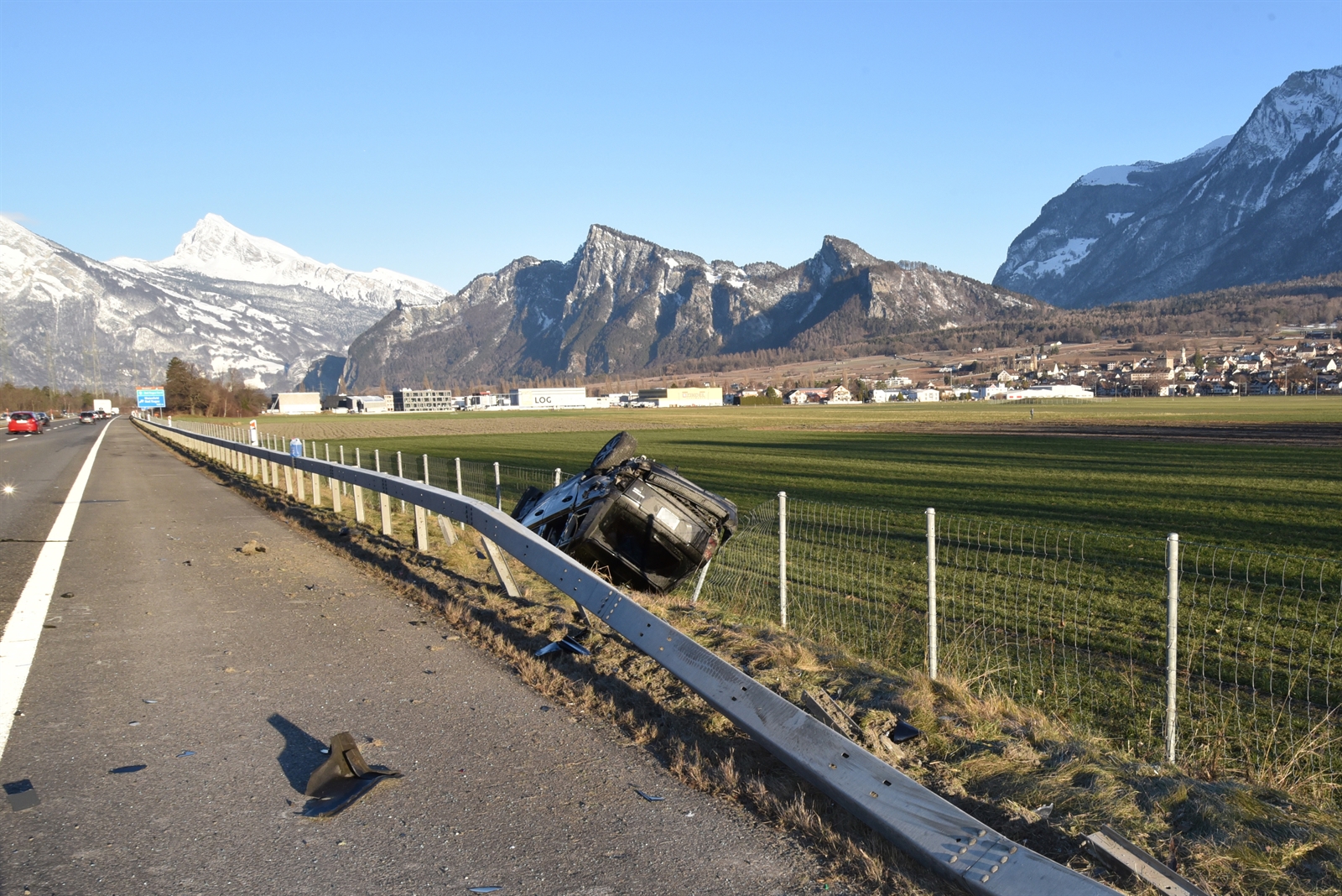 Eine 59-jährige Autolenkerin fuhr am Freitagmorgen um acht Uhr auf der Nordspur der A13 von Landquart in Richtung Maienfeld. Sie nickte kurz ein und ihr Auto touchierte die Mittelleitplanke. Danach lenkte sie nach rechts und das Fahrzeug durchbrach die Leitplanke. Dabei überschlug es sich mehrfach auf dem abfallenden Wiesenbord und kam dort auf dem Dach liegend total beschädigt zum Stillstand. Die Lenkerin und ihr Mitfahrer verliessen das Auto selbständig. Zwei Ambulanzteams transportierten die beiden Leichtverletzten ins Kantonsspital Graubünden nach Chur. Während der Rettungs-, Tatbestands- und Instandstellungsarbeiten konnte der Verkehr den Unfallort auf der Überholspur passieren.