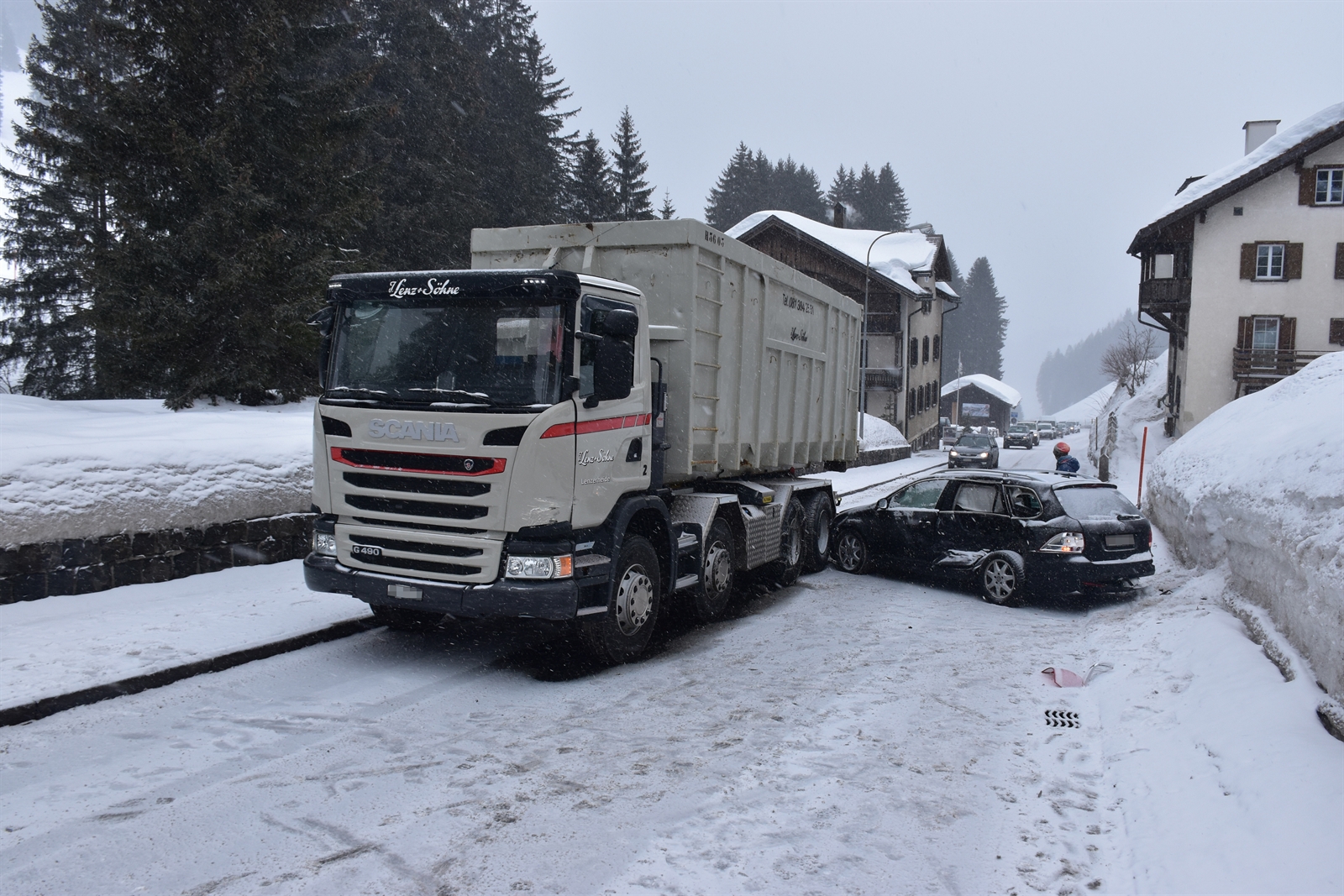 Am Donnerstagmorgen hat sich in Parpan ein Verkehrsunfall ereignet. Ein Personenwagen kollidierte auf der schneebedeckten Hauptstrasse 3a mit einem Lastwagen.