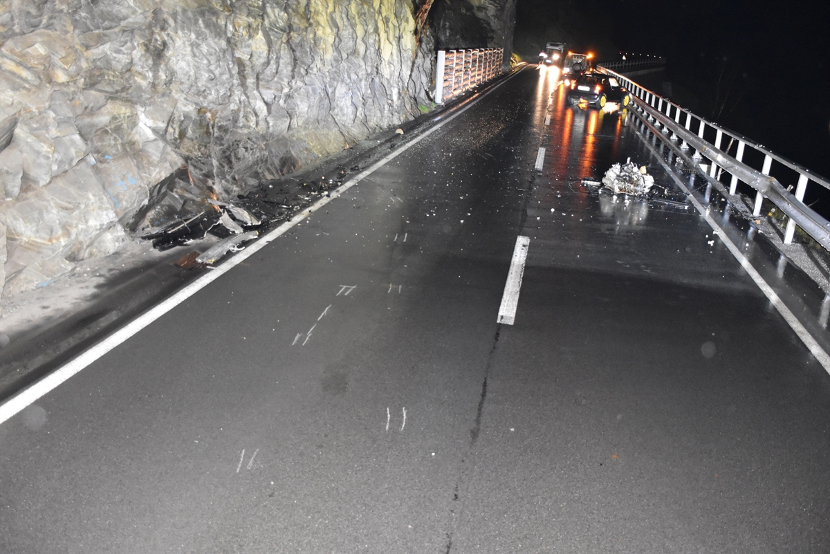 Der 22-jährige Lenker fuhr auf der Engadinerstrasse H27 um 20.45 Uhr von Lavin herkommend in Richtung Giarsun. Bei der Örtlichkeit Gonda, kam das Fahrzeug in der dortigen langgezogenen, übersichtlichen Rechtskurve ins Schleudern und prallte linksseitig heftig gegen die Felswand. Dadurch wurde der Motor des Wagens aus den Halterungen im Motorraum gerissen. Dieser wurde heftig gegen die rechtsseitige Leitplanke geschleudert und kam auf Fahrbahn zum Stillstand. Nach dem heftigen Aufprall gegen die Felswand drehte sich das Auto um die eigene Achse, und kam etwa zwanzig Meter hinter dem ausgerissenen Motor zum Stillstand. Der Lenker sowie der Begleiter wurden dabei verletzt und mit der Ambulanz Zernez ins Spital nach Scuol gebracht. Für das ausgelaufene Öl und die Strassenreinigung wurde das Bezirkstiefbauamt Graubünden aufgeboten.