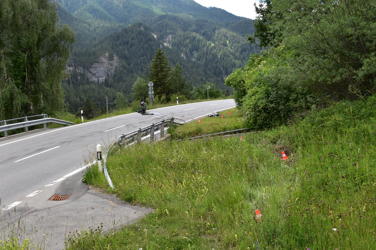 Der 31-jährige Tscheche fuhr als Erster einer Motorradgruppe vom Albulapass in Richtung Tiefencastel. Nach Alvaneu Bad geriet er rechts über den Fahrbahnrand, fuhr die Böschung hinauf und übersprang mit dem Motorrad den Bach Val digl Guert. An der Hauptstrasse blieb er verletzt liegen. Für die medizinische Erstversorgung wurde die Ambulanz aus Thusis aufgeboten. Die Rega überführte den Mann ins Kantonsspital Graubünden nach Chur. Das total beschädigte Motorrad wurde abtransportiert. Während der Rettungs- und Bergungsarbeiten war die Albulastrasse für eine Dreiviertelstunde gesperrt.