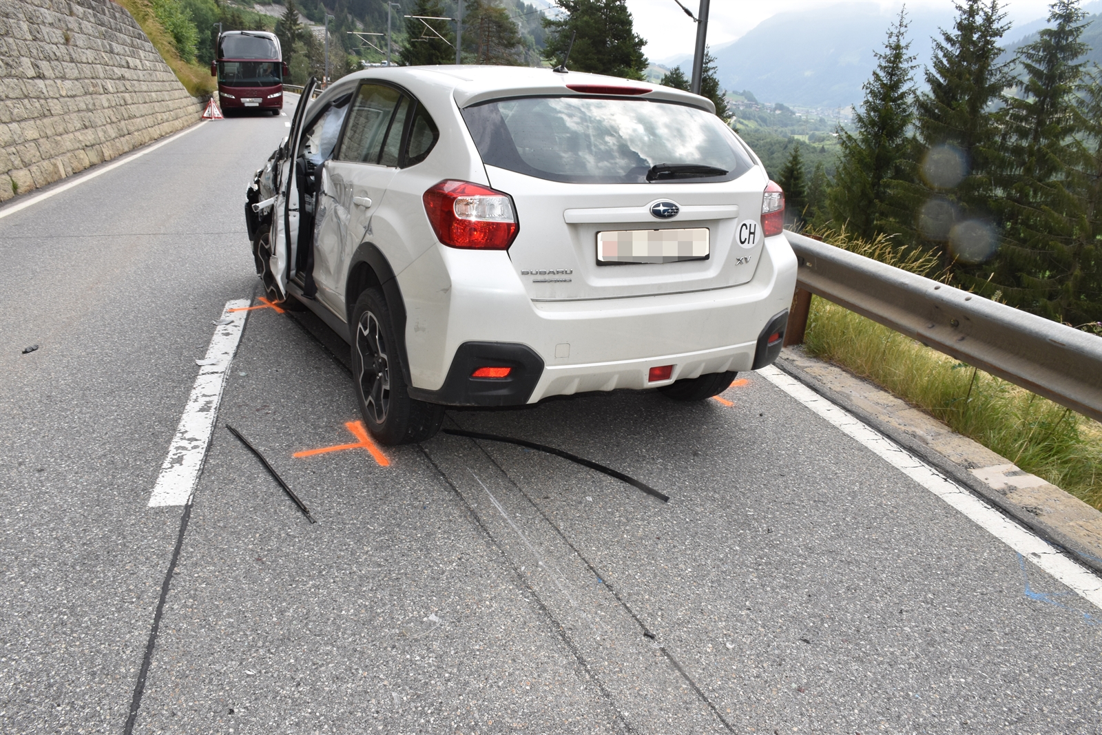 In Disentis/Mustér sind am Montag auf der Hauptstrasse ein Reisebus und ein Auto seitlich-frontal miteinander kollidiert. Der Autolenker wurde dabei verletzt.