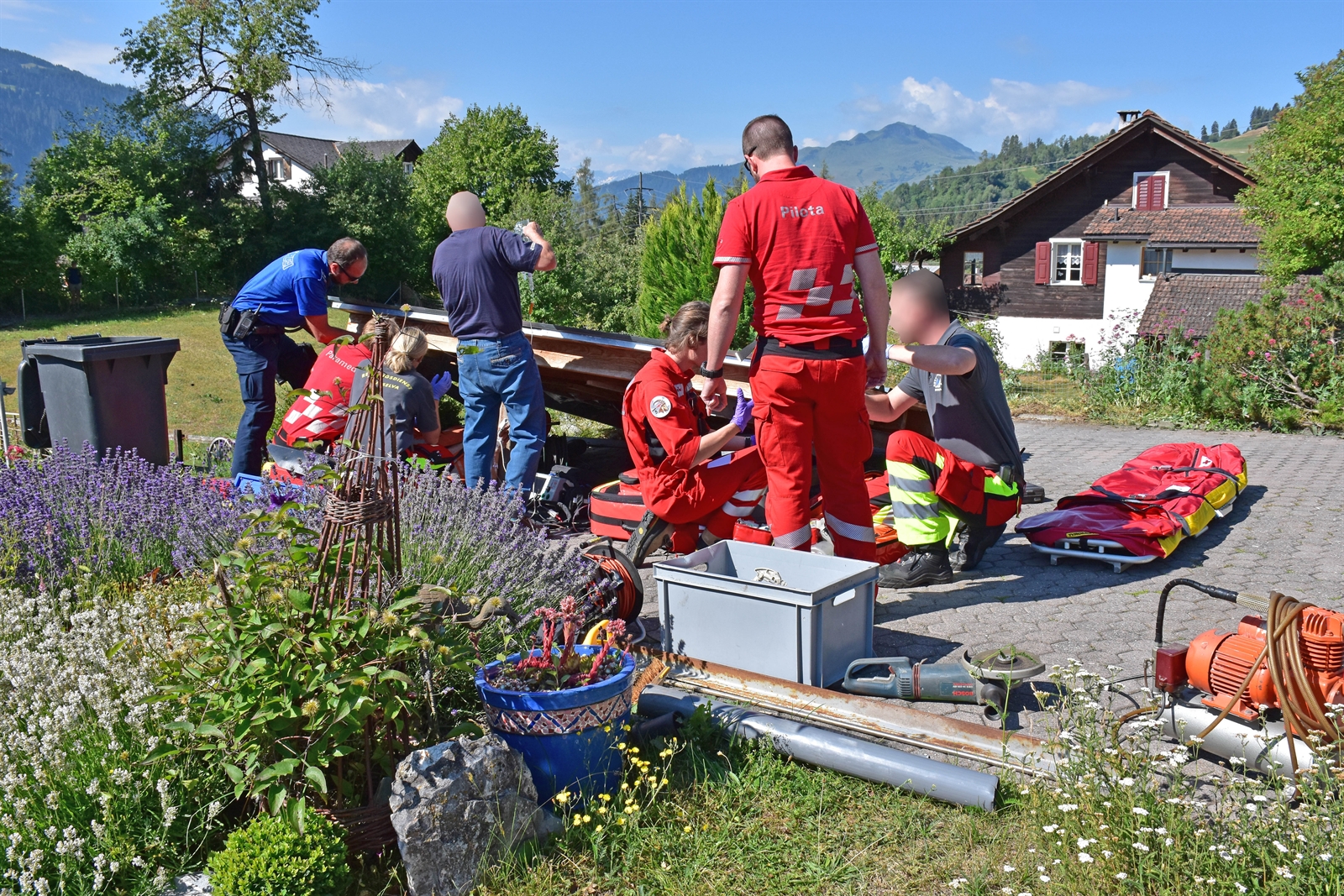 Zwei Männer wollten am Donnerstag in Laax einen Fahrzeugunterstand abändern. Aus noch nicht geklärten Gründen klappte gegen 09.40 Uhr die Stahlkonstruktion überraschend zusammen. Dabei wurde der 66-Jährige eingeklemmt und an der Hand verletzt. Ein Ambulanzteam sowie eine Rega-Crew betreuten den Verletzten vor Ort, bevor dieser ins Kantonsspital Graubünden nach Chur überflogen wurde. Die Kantonspolizei Graubünden untersucht den Unfallhergang.