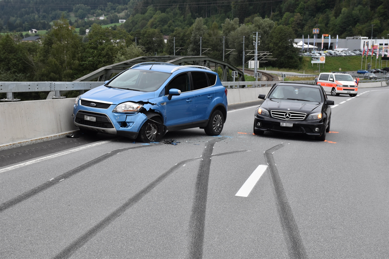 Ein 25-jähriger Automobilist fuhr von Ilanz kommen über die Lugnezerstrasse in Richtung Kreisel Ilanz West. Auf der Rheinbrücke verlor der Lenker in einer Linkskurve die Herrschaft über sein Fahrzeug. Schleudernd kollidierte dieses mit einem Entgegenkommenden. Der 25-Jährige und sein Beifahrer sowie die zwei Personen im entgegenkommenden Fahrzeug blieben unverletzt. Die Kantonspolizei Graubünden klärt die genauen Umstände ab, welche zu dieser Kollision geführt haben.