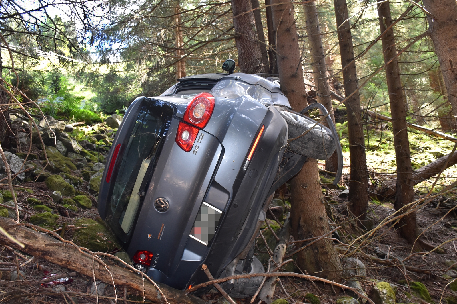 Ein 42-jähriger Lenker manövrierte in Begleitung seiner 2- und 7-jährigen Kinder am Sonntagmittag sein Auto in Davos Glaris auf einer Alpstrasse bei der Örtlichkeit Leidbach. Das Auto geriet von der Strasse ab und fuhr unkontrolliert einen Abhang hinunter. Es überschlug sich mehrmals, kollidierte heftig mit einem Baum und blieb rund vierzig Meter unterhalb der Strasse total beschädigt am Baum stehen. Der Lenker verliess das Auto selbständig und barg seine beiden Kinder aus dem Fahrzeug. Das 2-jährige Kind erlitt mittelschwere, der Vater und das 7-jährige Kind leichte Verletzungen. Ein Mann, welcher sich in der Nähe aufhielt, hörte die Kollisionsgeräusche und eilte zu Hilfe. Er brachte die drei Verletzten ins Spital Davos.