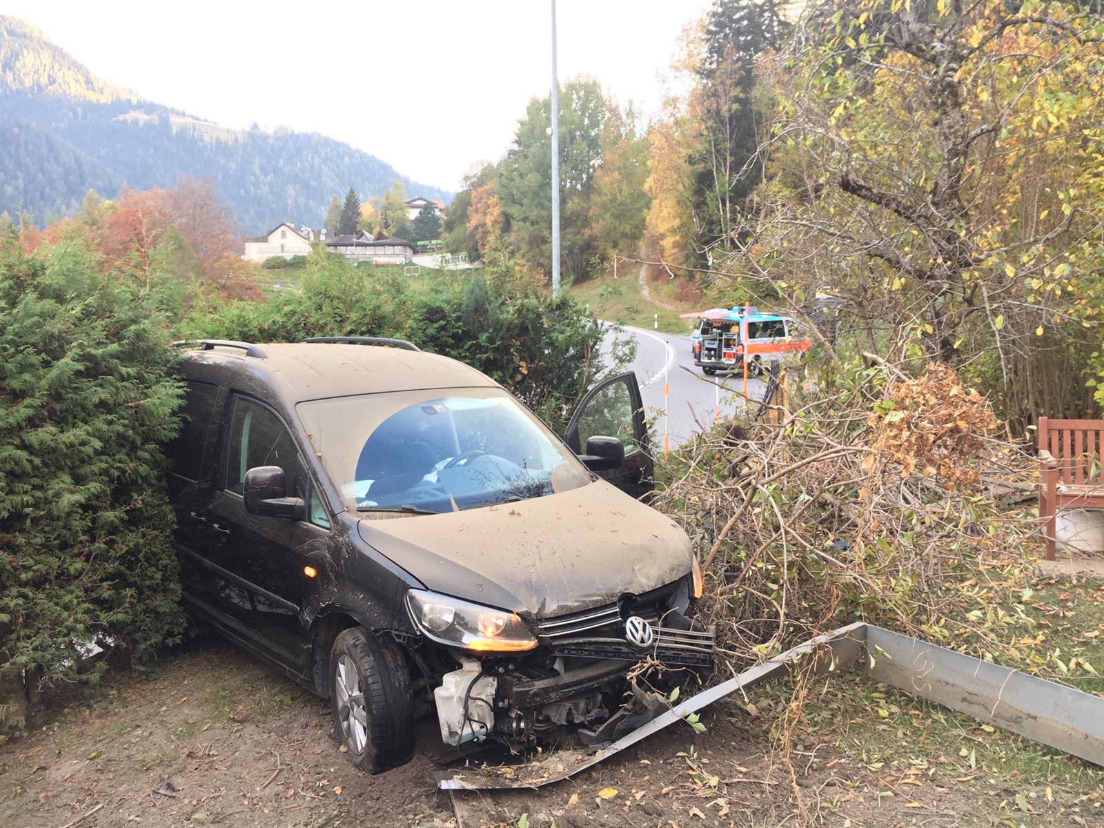 Am Dienstagnachmittag hat ein Auto in Malix die Fahrbahn verlassen. Bei einer anschliessenden Kollision wurde das Auto stark beschädigt. Die Insassen blieben unverletzt.