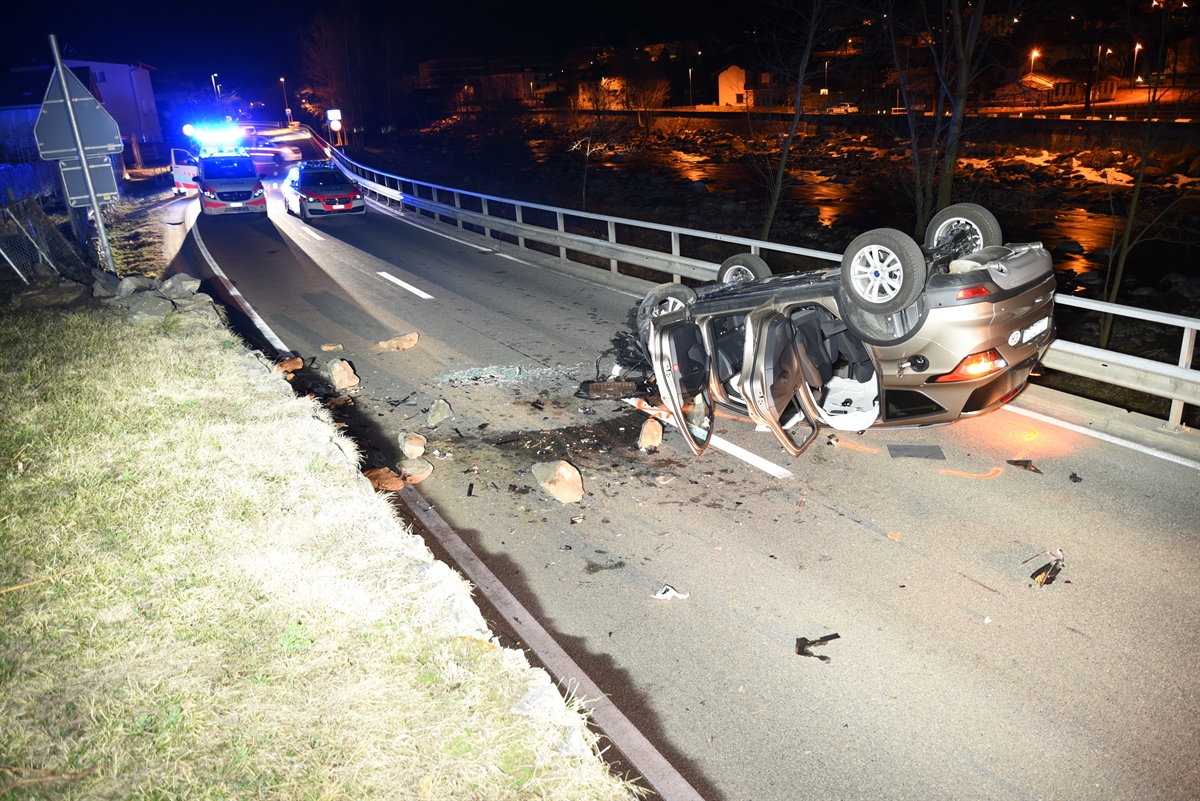 Am Samstag hat sich auf der Italienischen Strasse H13 ein Auto überschlagen. Zwei Mitfahrer wurden bei diesem Selbstunfall verletzt.