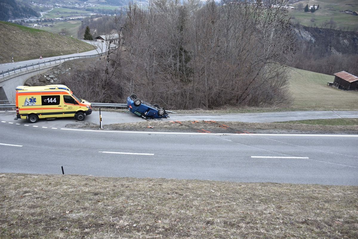 In Luven auf Gemeindegebiet von Ilanz ist am frühen Montagabend ein Personenwagen von der Strasse abgekommen und einen Abhang hinuntergestürzt. Eine Frau wurde dabei mittelschwer verletzt.