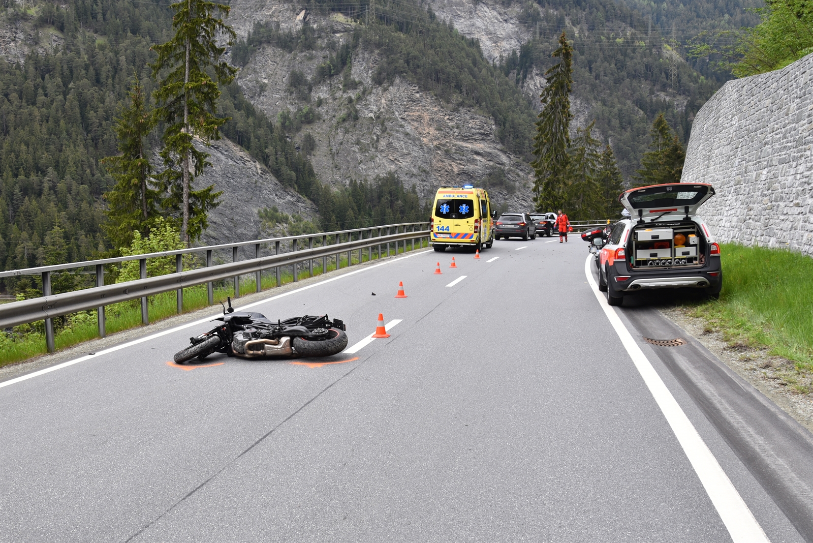 Der 34-jährige Italiener fuhr am Sonntag als hinterster Motorradlenker einer Gruppe auf der Schinstrasse von Tiefencastel in Richtung Sils i.D. Um 13.40 Uhr kollidierte er in einer Linkskurve mit der rechtsseitigen Leitplanke und kam zu Fall. Dabei zog er sich mittelschwere Verletzungen zu. Ein Ambulanzteam des Spitals Thusis versorgte den Mann notfallmedizinisch. Die Rega flog ihn mit Rückenverletzungen ins Kantonsspital Graubünden nach Chur. Am Motorrad entstand ein Sachschaden von rund dreitausend Franken.