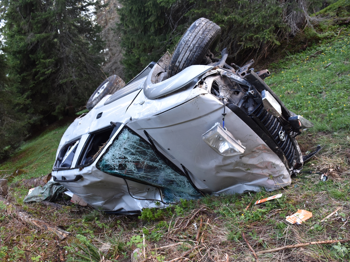 Am Sonntagabend ist auf einer Alpstrasse in Trin ein Auto mit vier Personen von der Fahrbahn abgekommen. Alle Fahrzeuginsassen kamen mit leichten Verletzungen davon.