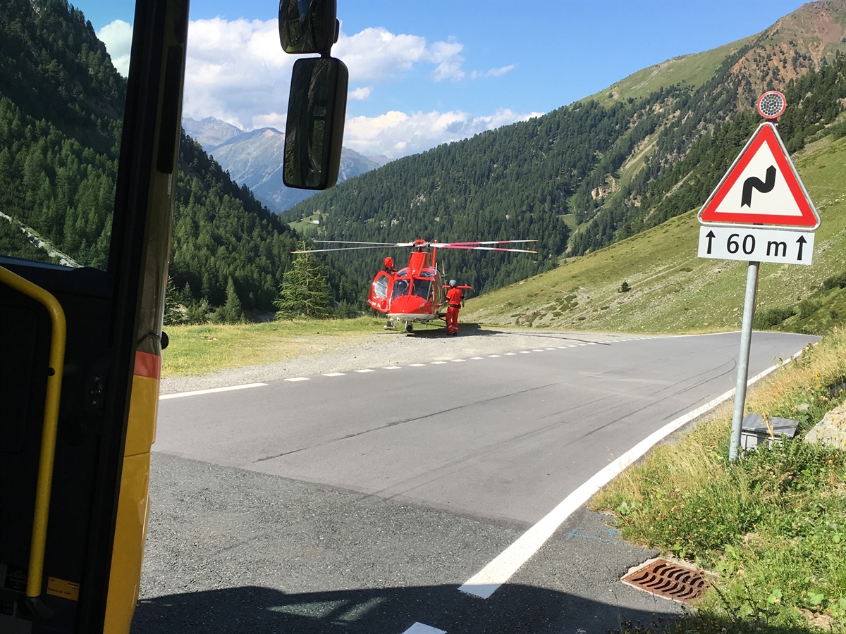 Am Sonntag ist es am Umbrailpass zu einem Selbstunfall mit einem Motorrad gekommen. Die Soziusfahrerin zog sich dabei mittelschwere Verletzungen zu.