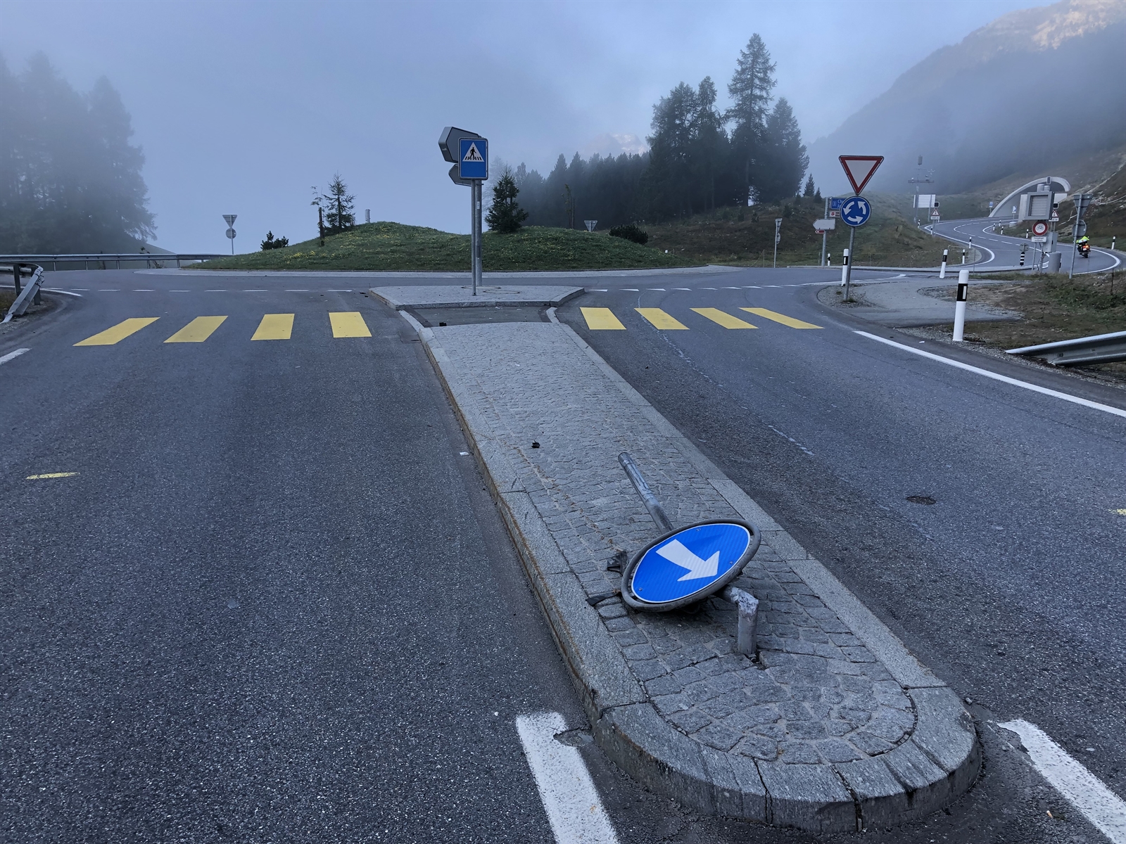 Auf der Engadinerstrasse in Silvaplana hat sich am frühen Sonntagmorgen ein Verkehrsunfall ereignet. Die lenkende Person eines Autos ist, ohne die Beschädigung an der Strasseninfrastruktur zu melden, weitergefahren.